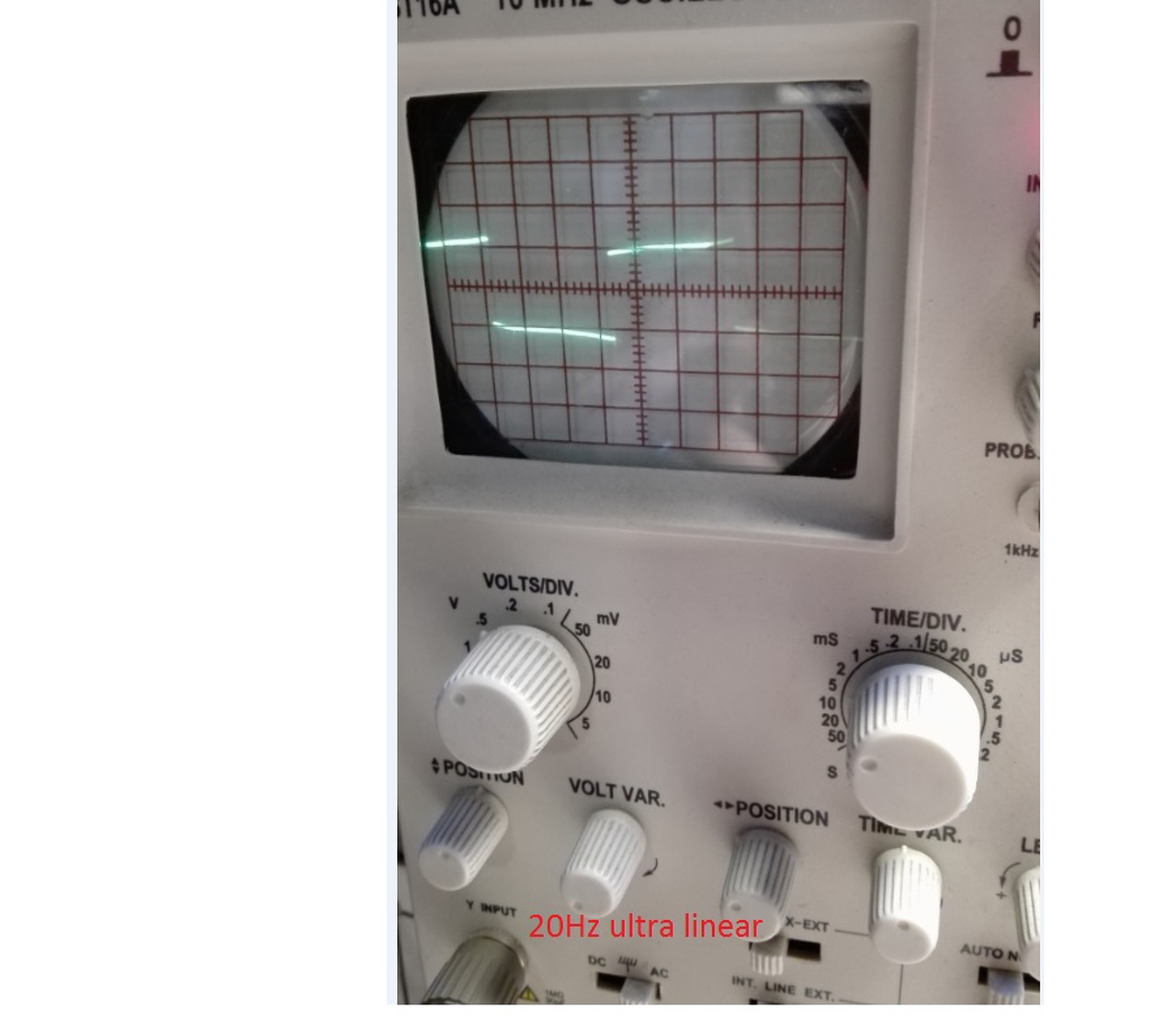 Csináltam méréseket, természetesen miután be állítottam az élőfokot, a fázis fordító részt (6N6P) egyenlő AC feszültségre (szimmetria potival), és ezután jött a három típusú üzem mód tesztelése, az ultra lineár, a trióda mód, és a pentóda mód, csináltam mind a három üzem módról fotókat 20Hz, és 10KHz négyszög jellel meghajtva, a kimeneten 8 ohmos műterheléssel, és oszcilloszkóppal párhuzamosan a műterheléssel.