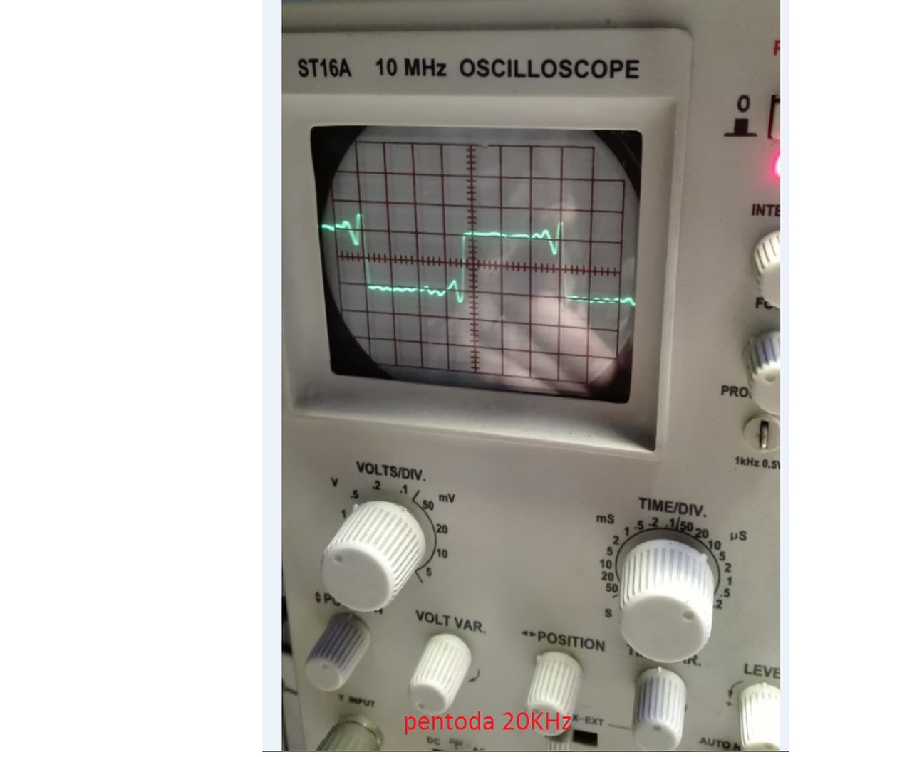 Csináltam egy pár változtatást a kapcsoláson, az első trióda 6N3P katódján lévő 160 ohmos ellenállást le cseréltem egy 1K trimer potira, hogy könnyebben tudjam be állítani a katód feszültséget, most jelenleg 450 ohm, így ezzel az értekkel az előerősítő rész és a fázis fordító rész is tokéletesen működik torzítás nélkül. Csináltam méréseket, természetesen miután be állítottam az élőfokot, a fázis fordító részt (6N6P) egyenlő AC feszültségre (szimmetria potival), és ezután jött a három típusú üzem mód tesztelése, az ultra lineár, a trióda mód, és a pentóda mód, csináltam mind a három üzem módról fotókat 20Hz, és 10KHz négyszög jellel meghajtva, a kimeneten 8 ohmos műterheléssel, és oszcilloszkóppal párhuzamosan a műterheléssel. Kíváncsi voltam hogy a három üzem mód mellet milyen teljesítményeket tudok el érni, amik a következők. Ultra lineár mód 1KHz kimeneten AC 14,6V ez 26,6W-nak felel meg 440mV bemeneti jel szint mellet. Trióda mód 1KHz kimeneten AC 10,9V ez 14,8W-nak felel meg 341mV bemeneti jel szint mellet. Pentóda mód 1KHz kimeneten AC 18,3V ez 41,8W-nak felel meg 500mV bemeneti jel szint mellet. Ezek a mérések szinusz jellel történtek, és ezekkel a bemeneti jel szintekkel még nem vágta a szinusz jelet!, 1KHz mértem meg az erősítő teljesítményét mert nagyobb frekvencián valószínűleg mar csalt volna a műszerem!. Kellet még változtatnom az NFB ellenállását is 10K ellenállásról 23K ellenállásra, ugyan is 10K ellenállással sajnos el kezdet gerjedni az erősítő (ez sajnos kimenő trafó hibája!, CHZ-nak jobb kimenője van! ), erről is teszek fel egy képet.