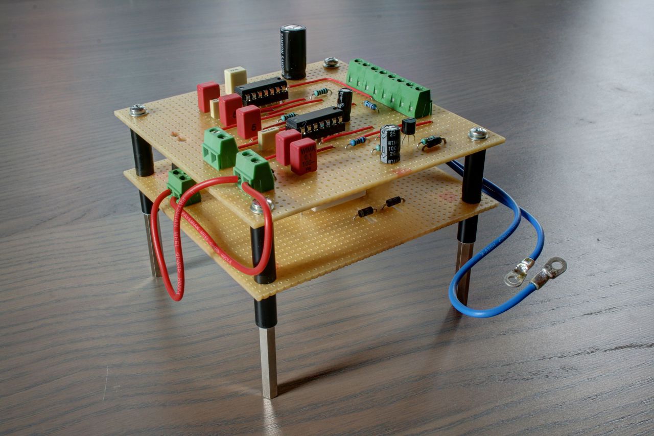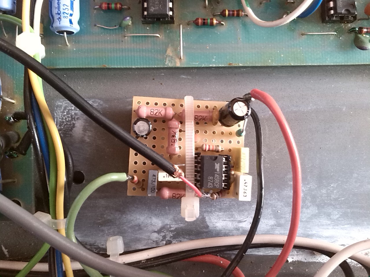 Van egy félvezetős gitárkombóm és aki ismeri az ilyeneket az tudja, hogy a tiszta hangja nagyon tiszta. Ezért összedobtam kísérletként egy ládaszimulátort. Végül be is építettem, mert egyszerű és meggyőző volt a változás. A C4 220pF volt mikor megépítettem, ez kb 4,5kHz-re tette a felső frekvenciát. Majd addig törpöltem, hogy párhuzamosan mellé tettem még egy 100pF-t, ami 3,5kHz-et jelentett, majd így építettem be. Az IC-n kicsit vaciláltam, TL072 volt a terv, de kipróbáltam 1458-al is, ami maradt. Azért, mert a 072 kb. 800Hz-ig szabályosan szinusosította a háromszög jelet. A 1458 meg 2kHz-ig. Hozta is a hozzáfűzött piszkosító szerepet. Végre a tiszta nem kristály tiszta. Ellenben a 220+100pF együttest megválltoztattam, bár a legjobb hangzást adta, de a nem tudtam nyugodtam lenni attól, hogy a magast teljesen fel kellett tekerni és nem volt tartalék, folyamatosan birizgálta az agyamat. Így a plussz 100-ból 47 lett, bár nem olyan blues-os, de megnyugodtam. Ajánlom akinek félvezetős erősítője van, egy próbapanelen összelehet dugni, effekt hurokba kötve kipróbálni. |