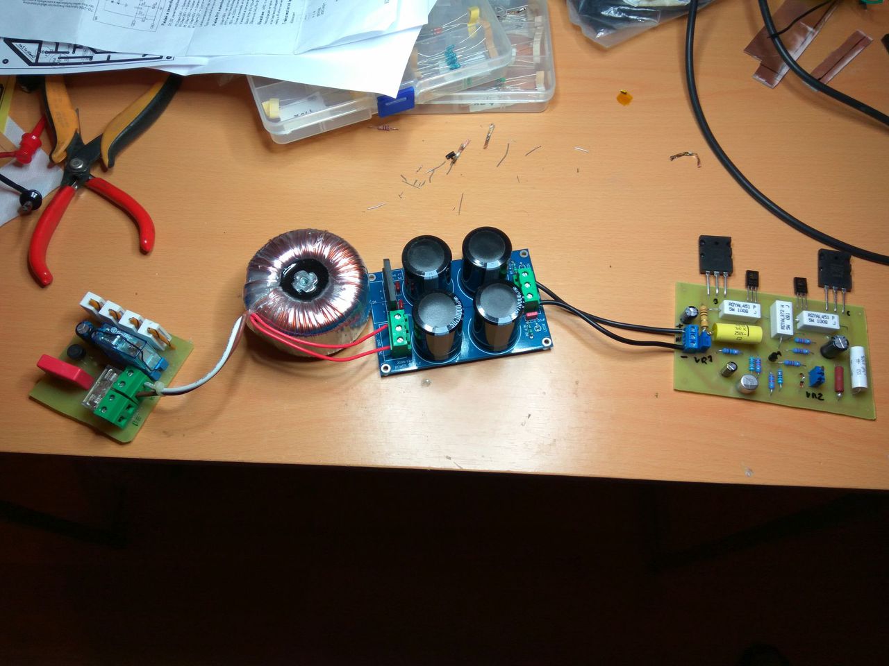 Neki álltam én is végre az erősítőnek. Már csak a hűtő bordához kell rögzítenem a tranyókat és akkor jöhet a füst
