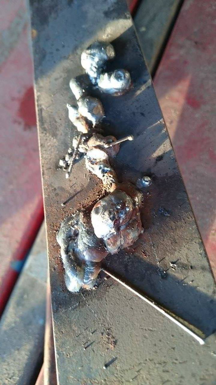 Úgy néz ki mintha nem lenne jól beállítva az előtolás és az áram és még mintha nagy lenne a távolság a lemez és a pisztoly között. Ha nagy távolsággal akarsz dolgozni akkor sokkal több gázra van szükség!