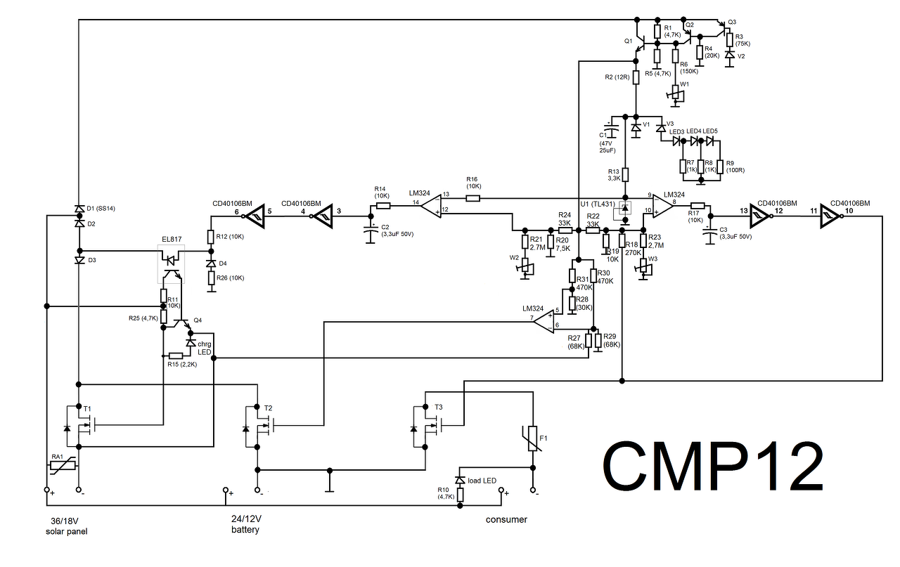 Komolyra fordítva, vétek lenne a nehezen megtermelt energiát csak úgy elfűteni. A HMV előállítás jó ötlet, de én inkább azt csinálom, hogy ha jó napsütés van és töltődik az akku, külön kis komparátor figyeli az akkufeszültséget, és indítja a szivattyút, ha a hidrofór megtelt, jöhetnek további fogyasztók. Tehát egy sorrendi, egyidejűség kizárásos vezérlés van. A szigetüzemben akkor kell "dolgozni" amikor süt a NAP!