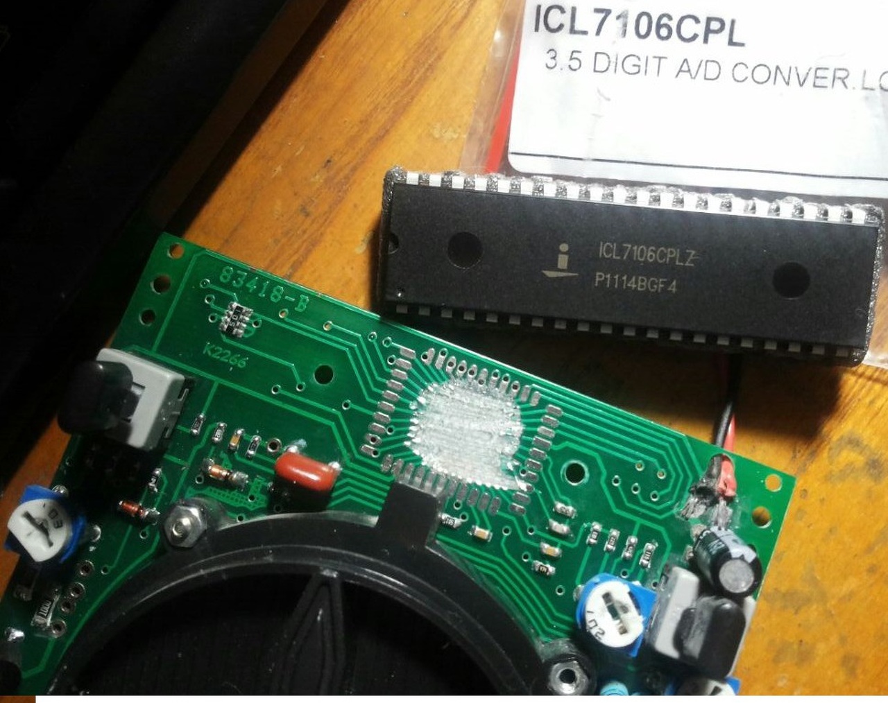 Most úgy döntöttem, hogy kísérletezek egy kicsit, megpróbálom kicserélni az ICL7106 IC-t.