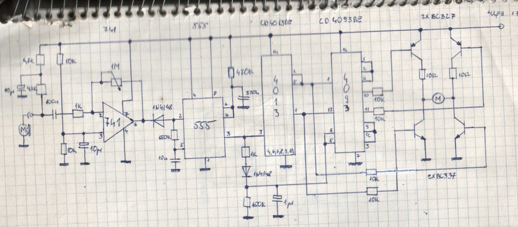 Megépítettem a Bevált motorvezérlő kapcsolást (kockás papíron volt kézzel rajzolva).