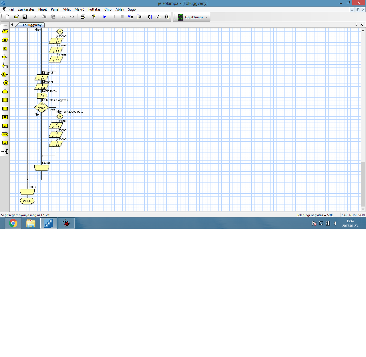 Ebben a formában igen. Valahol be kell látni, hogy a folyamatábra nem átlag-számításra való. Az érintett nyelv folyamatábrával akarja megoldani 3 szám összeadását, a tapasztalat meg azt mutatja, hogy jobb elkerülni ezeket a nyelveket. Hatalmas kódot generálnak és nem lehet megoldani velük semmit. De ez csak a személyes élményem, 2 évig kellett dolgoznom ilyenen. Utána átírtuk C-be és a program sebessége azonnal 5-szörösére nőtt és mindenki átlátta, ráadásul licenszet sem kellett fizetni. A folyamatábrát kizárólag magasabb szinten tartom elfogadhatónak, például ami az elektronikai adatlapokon van. Túllépnek azon a nehézségen, hogy hogyan történik 3 LED bekapcsolásának folyamata. A hozzászólás módosítva: Jan 24, 2017