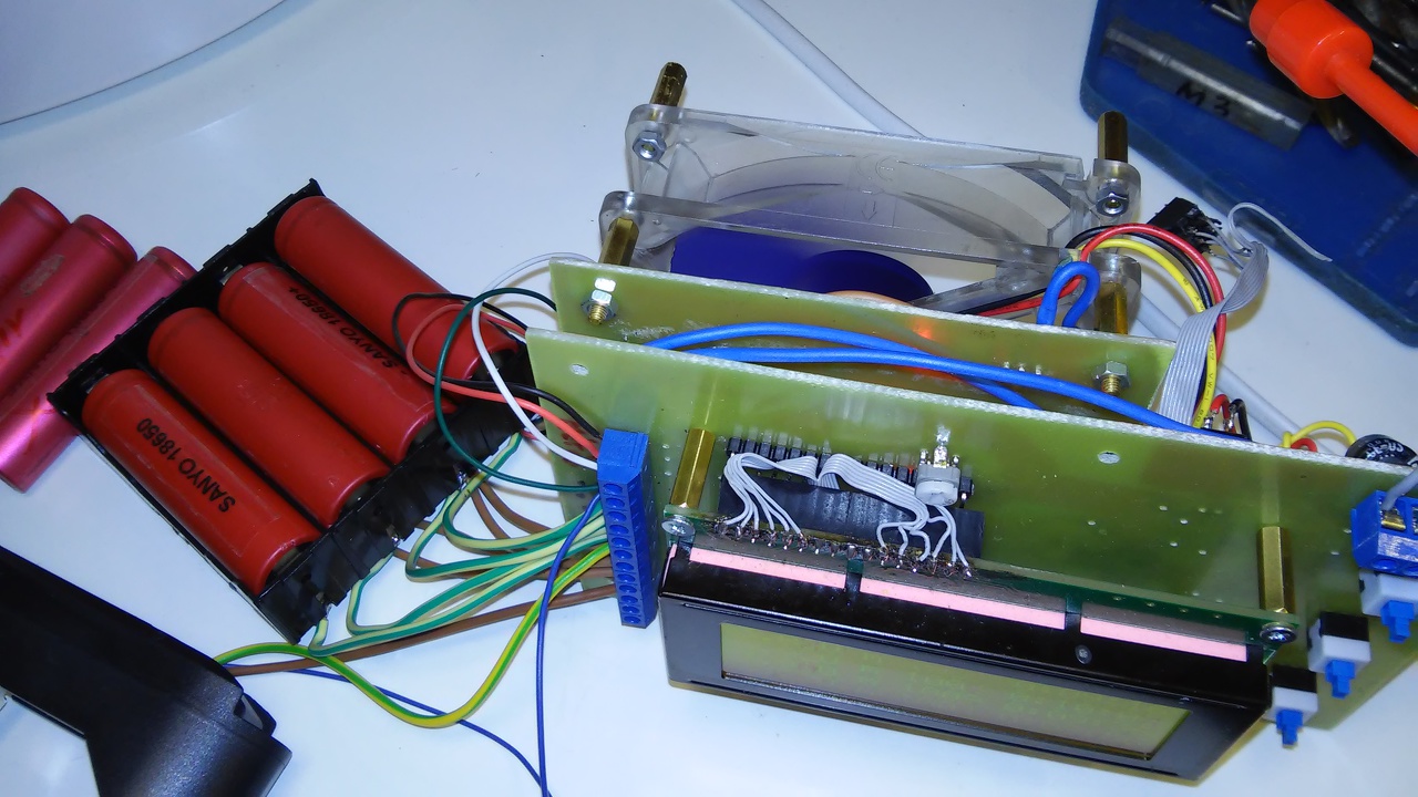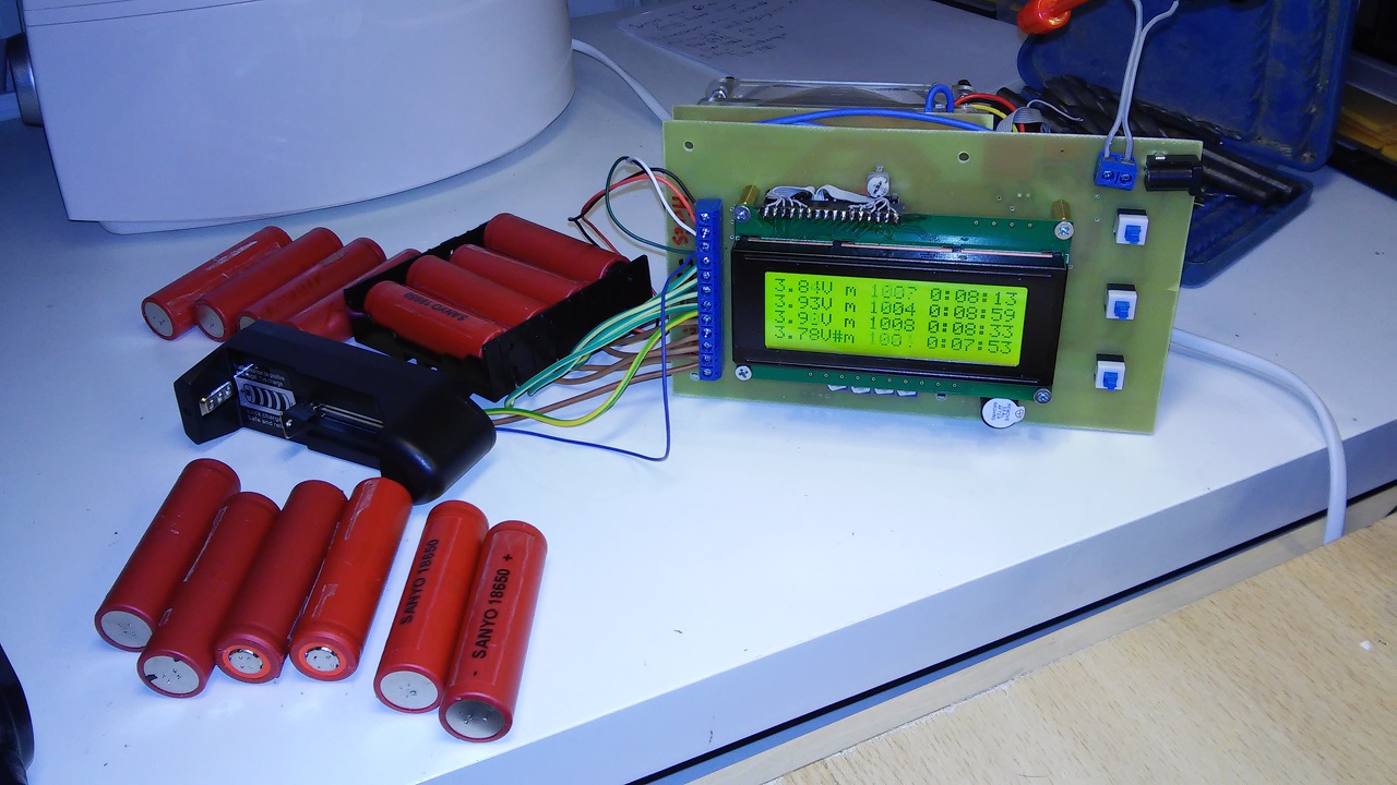 Átalakítottam két csavarbehajtót lithium ionosra, és kellett hozzá valami töltő is. Az egyik dobozába belefaragtam 4db 5V 2A-es tápot, és 4db TP4056-ot, a LED-eket kivezettem az előlapra. Mind a 4 töltő külön-külön ki van vezetve oldalra, dugdosható sorkapocsra, így lehet variálni, hogy sorba legyenek a töltők kötve, vagy kettő-kettő párhuzamosan, aztán sorosan, stb. Az akksiba 3S2P elrendezésűek a cellák, 4.4Ah összesen. Ugyanehhez a töltőhöz készült egy 18650 cella töltő lap, itt csak fel vannak fogatva a foglalatok, kettő párhuzamosan kötve.