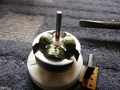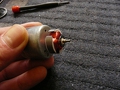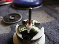 11 vissza rakás 12 Motorba így üssed vissza a bronzot ha lehet fával 13 a helyén 14 egy határozott mozdulattal beteszem a régi motort,de a motortengely lyukat fogd be mert a mágnes beártja,így azén keféből kijön és bibelödhetel vele. 15 ép bent a tengely,itt igazítom a motor elektronikát a kivágott helyére ,és ellen tartva a tengelyt nyomom be finoman 16 én megnéztem a bontót motorral hogy ha berakom a régit nem e sorjás a lyuk