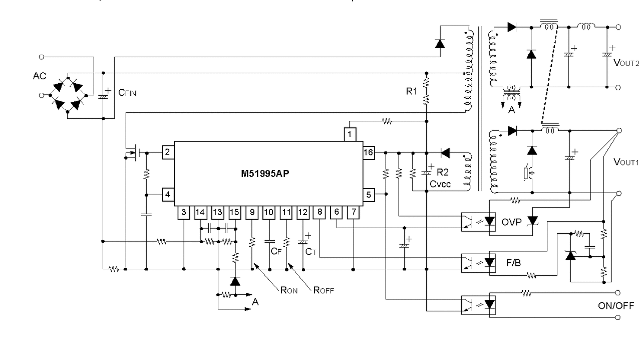 Épp fordítva - ahogy a rajzon is látszik - az optók a szekunder oldalról viszik a jeleket azIC felé, ami a hálózati potenciálon van. Meg kell mérni, mekkora tápfeszt kap az IC és ép e az a flyback dióda - ha van benne egyáltalán.