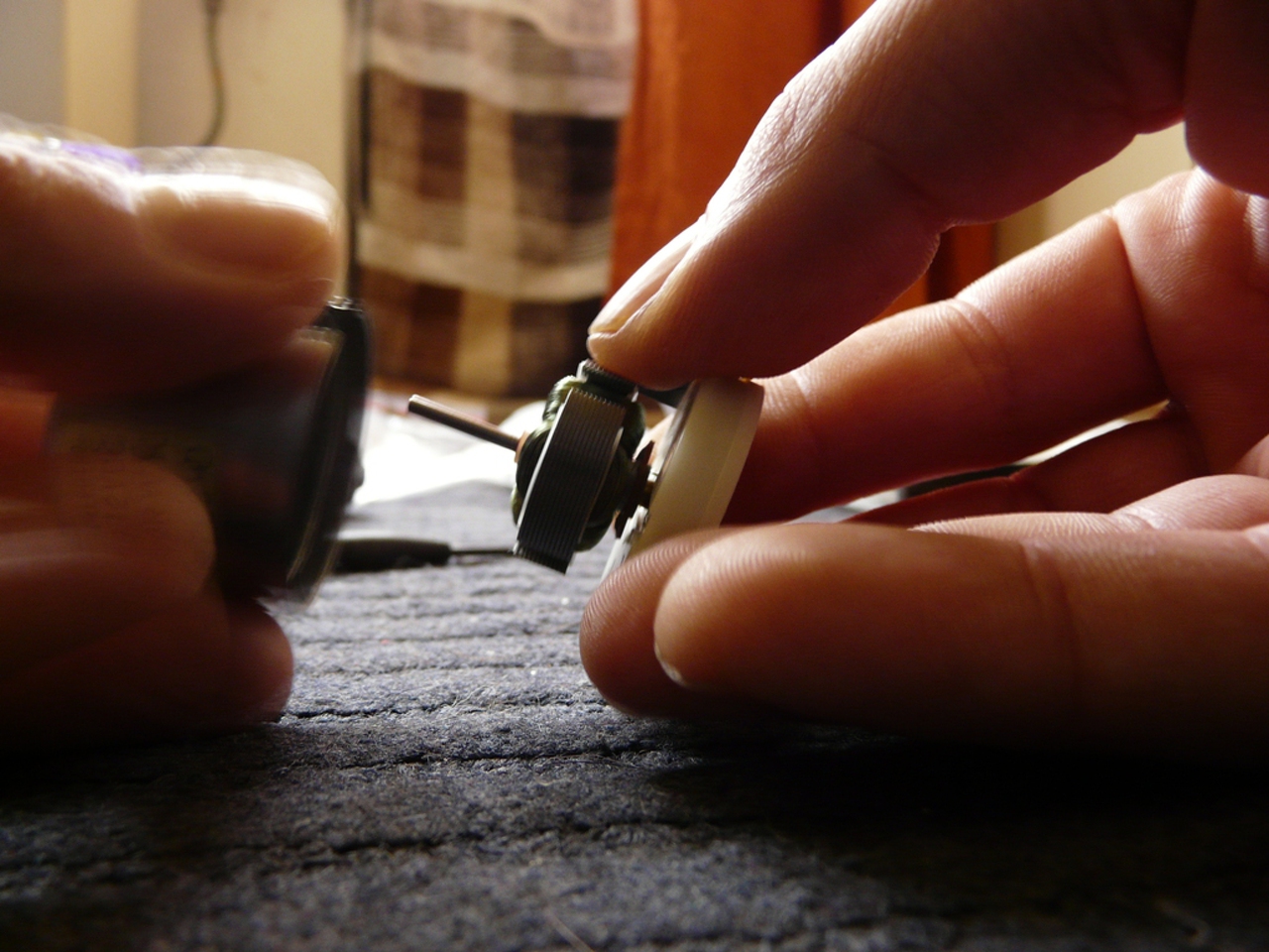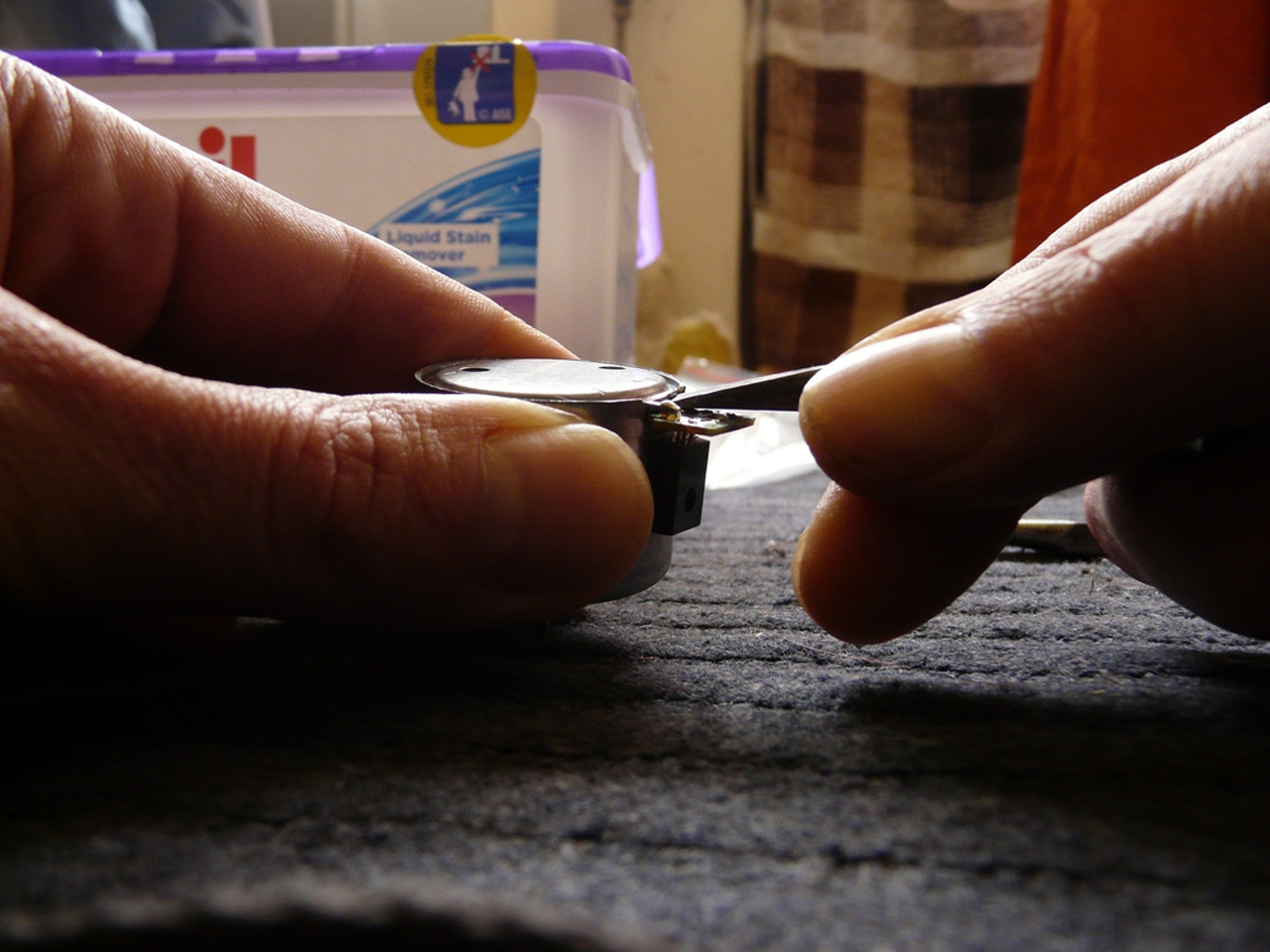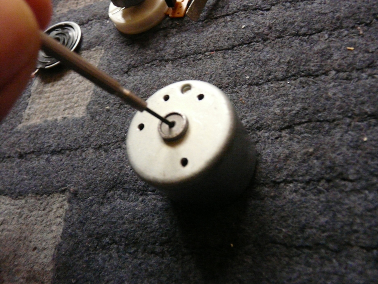 11 vissza rakás 12 Motorba így üssed vissza a bronzot ha lehet fával 13 a helyén 14 egy határozott mozdulattal beteszem a régi motort,de a motortengely lyukat fogd be mert a mágnes beártja,így azén keféből kijön és bibelödhetel vele. 15 ép bent a tengely,itt igazítom a motor elektronikát a kivágott helyére ,és ellen tartva a tengelyt nyomom be finoman 16 én megnéztem a bontót motorral hogy ha berakom a régit nem e sorjás a lyuk