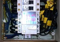) milyen nagy keresztmetszetű, látszik az is, hogy a PE és N sínt összekötő vezeték szintén milyen nagy keresztmetszetű és látszik az is, hogy csak pár szál 1,5mm2-es drót megy el róla (3 kék mágneskapcsolókhoz megy a negyedik kék és a zö