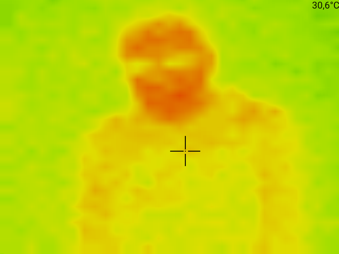Viszont hőkamerával, tök sötétben is, (spec megvilágítás nélkül) gyönyörű hőtérképet láthatunk magunkról.
