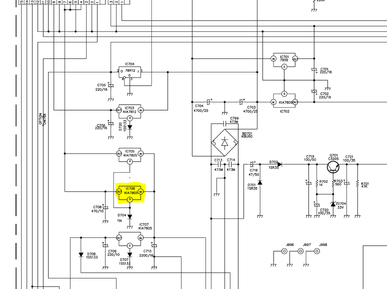 Értem hát sajnos ez a bonyolultabb kivitelezés mivel ez az ic négy kimenetes , és ezek egy tokon belül vannak.És hiába csak egy kimenete ment tönkre , és esetleg a többi jó lenne viszont a tápra zárlati hatással van , és működés képtelenséget okoz.Maradnak akkor a kimenetek mérései , és ha meg van melyik kimenet nem stimmel , akkor az ahhoz tartozó ic nek a pozitív , és negatív tápellátását is meg kell szüntetni addig amíg helyre áll a táp , ha jó , akkor sajnos az ic - t cserélni kell.
