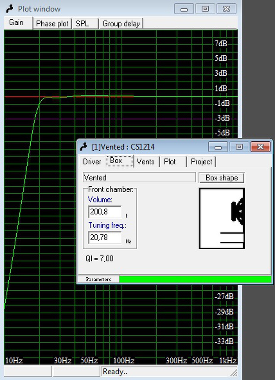 Én meg nem olvastam, hogy két darab van. De amit az egy darabos 45 literesre számolt a program, az lesz kb a két darabbal 90 literben. Csak a terhelhetőség és az érzékenység duplázódik, vagyis +3dB@1W és 160W max.