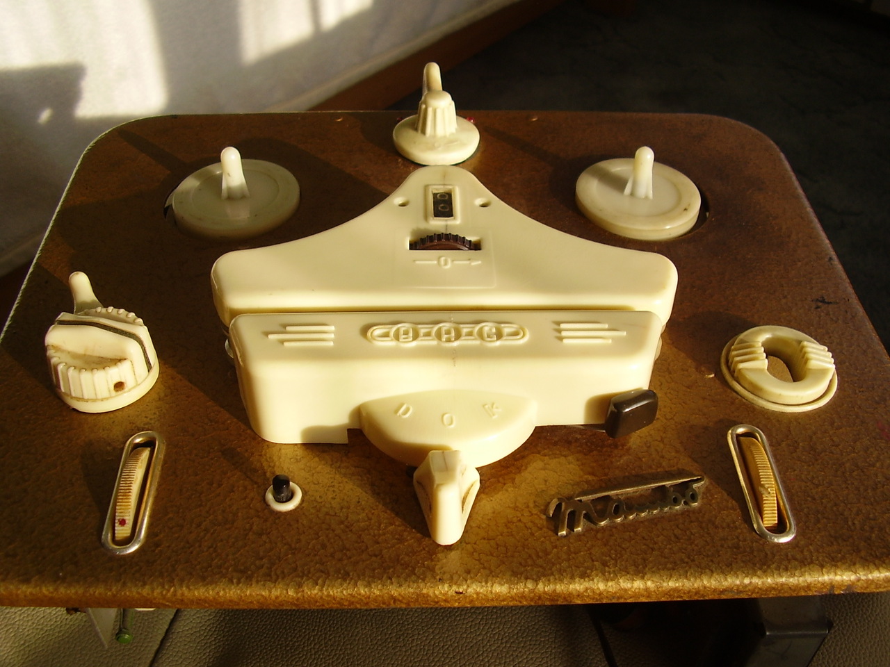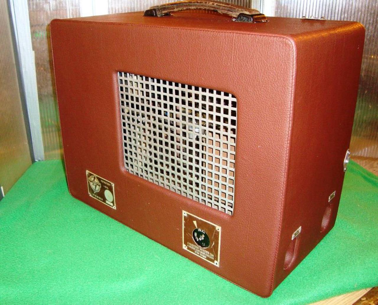 Ez persze nem így van, a doboza az eredeti, a feliratok, táblák is azok, csak a műbőr borítást cserélték ki rajta. A dobozt lecsiszolták, és az új anyaggal bevonták.Még a színe is olyan, mint amikor kijött a gyárból 1955-ben.