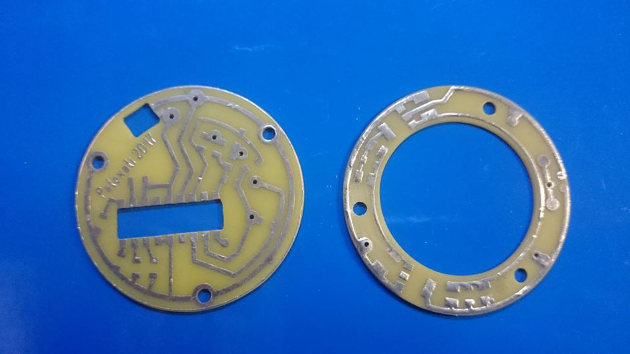 Elkészült az új W-Power is..5V-ról már megy azzal is elbírja a 67 ledes rotort.Hátán a motor meghajtása is melyben a tervezett smd kerámia kondikat át kellett cserélnem ilyen műanyagokra mert ezekkel tökéletes csak..