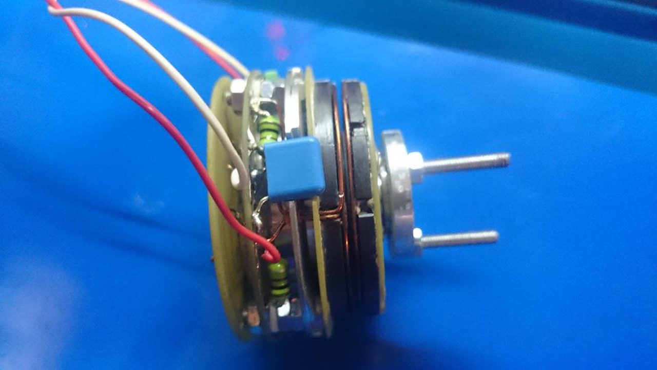 Igen az új!Nagyon jól szuperál..5V 670mA ,6V 540mA,7V 460mA a 67 ledes áramfelvétele a labortápon.A motor az 3,5V 300mA körül megy úgy 1300-at.Már csak egy spéci állány kell neki.Amúgy nem látszik de elég kicsi 50mm átmérő (elfér a 67ledes öcsi mögött ez volt a cél) szélessége kb 30mm plussz a rotor az öcsivel.