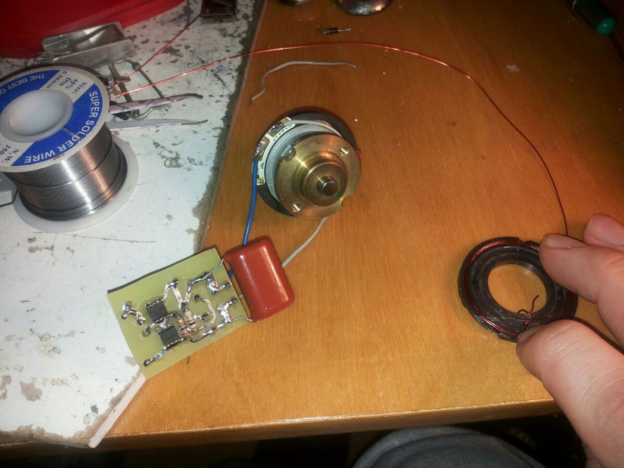 Apropó!A ferrittörés..Én szándékosan szorítóban,satuban törtem el a ferriteket mivel másképp nem tudtam kiköszörüoni méretre a belsejét.Így is izzott a szerszámköszörű korongján mire kiszedtem a felesleget. Ha kész csapágyragasztóval össze fél óra és megköt..