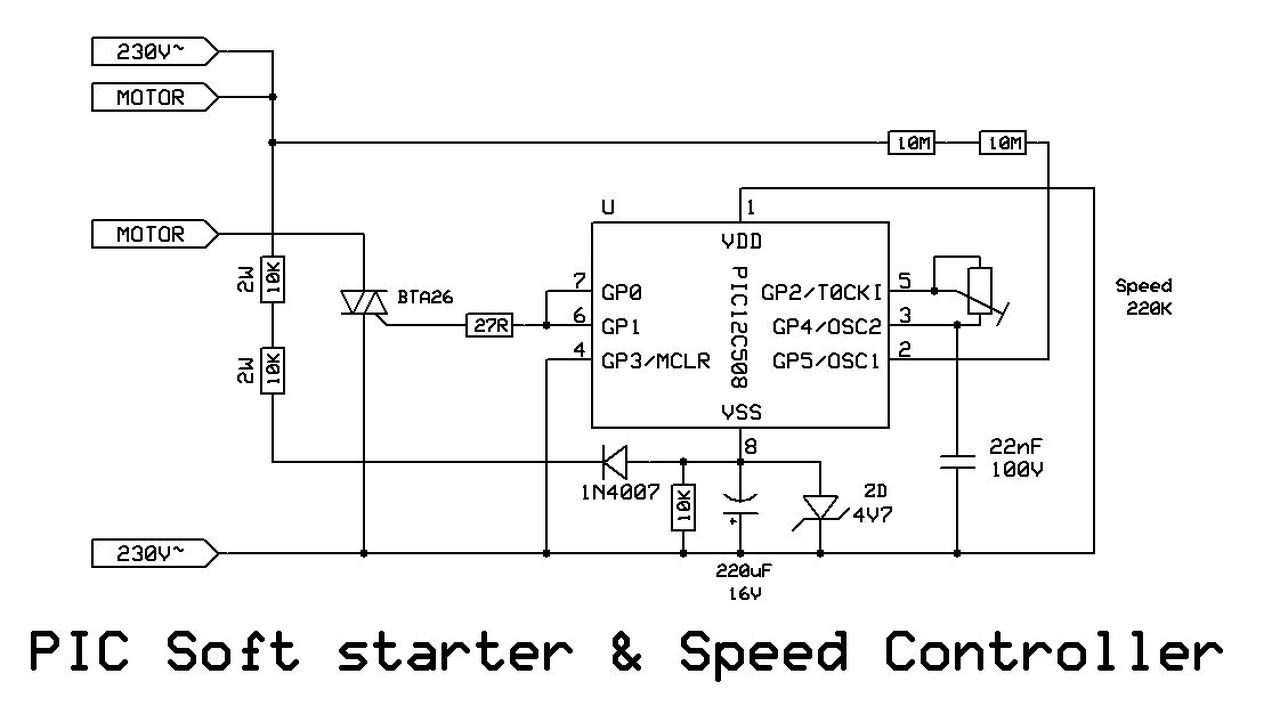 +1 az előttem felszólaló véleményéhez. Az a cucc annyit csinál, hogy fázis állapottól függően nyit / nem nyit a félvezető, és a teljes 230-nak kvázi csak egy kicsi részét engedi rá a motorra, annak folytán aztán kevésbé dolgozik. Sima analóg kapcsolással is meg lehet csinálni ugyan azt. Például van a linken egy conrád cucc a termék adatlapokkal együtt: Bővebben: Link