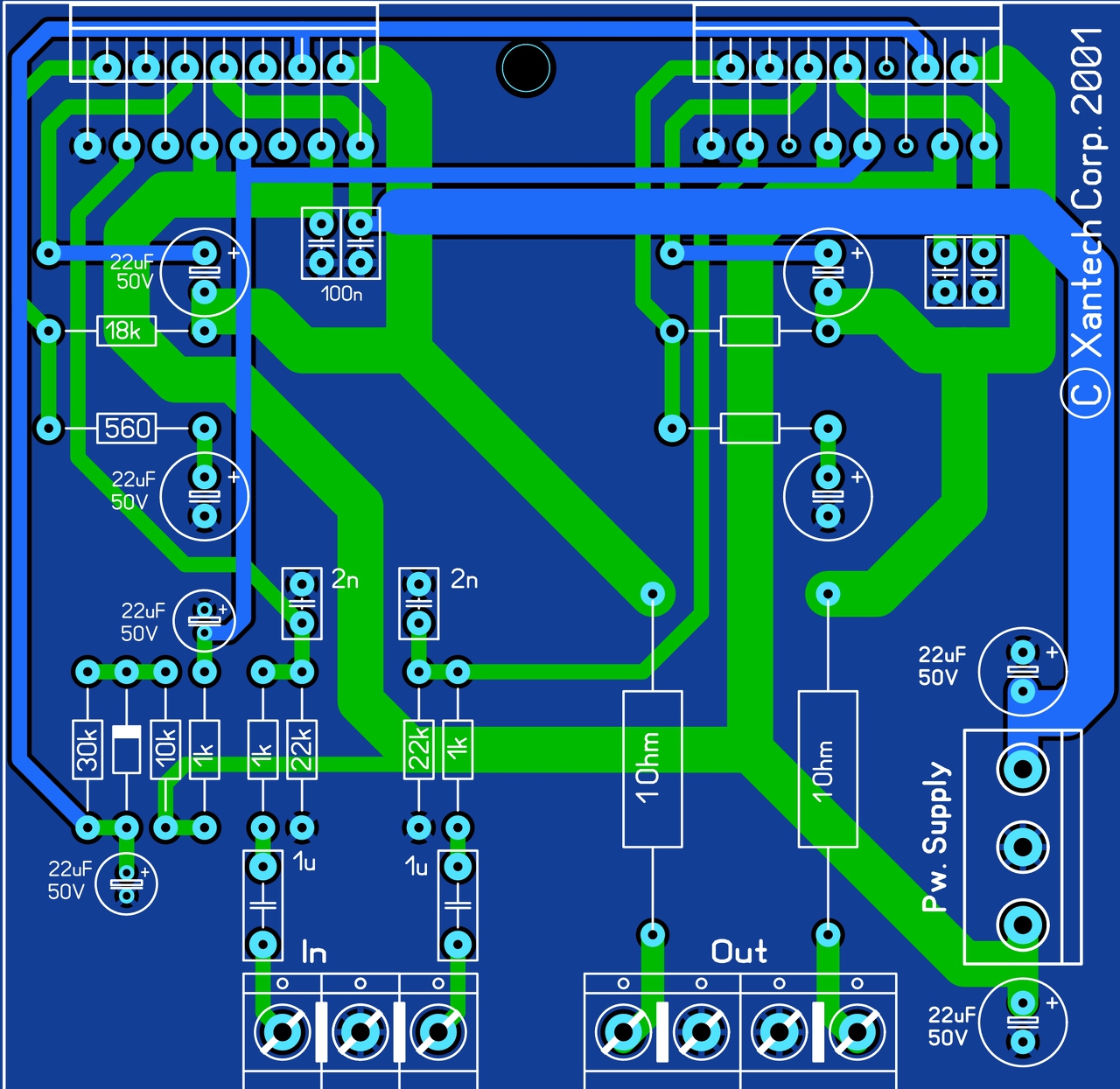 Na, elvileg sikerült lemásolnom a Xantech végfok paneljét. Vagy is annak végfok részét, mert a dual opa-as előerősítő részt levágtam róla, így azt érthető módon nem rajzoltam le.