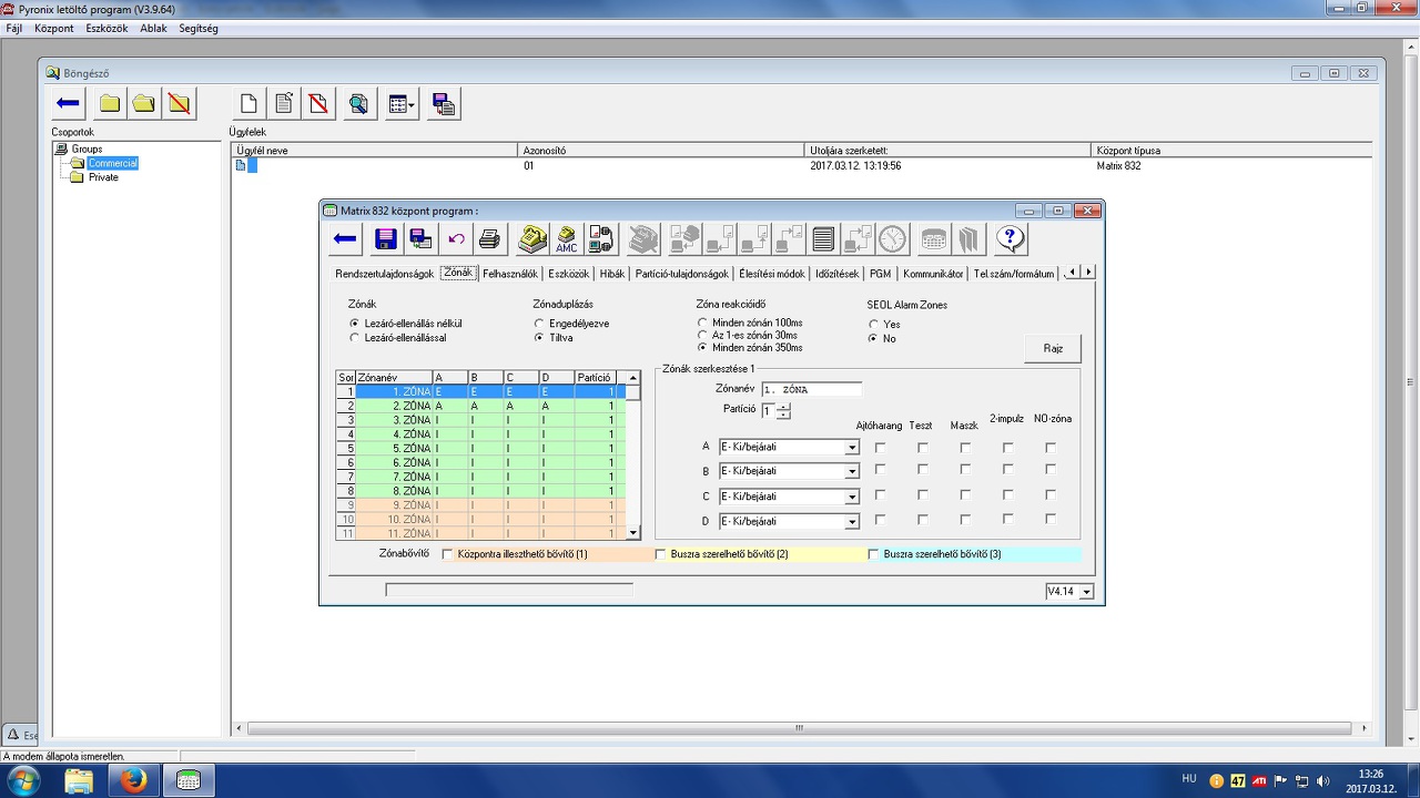 A kettős jelzés akkor vált ki riasztást, ha kétszer ugyanarról az eszközről a beállított intervallumon belül érkezik jel. Ha csak egy impulzus jön, akkor indul a számláló, és ha letelik, akkor törli az egészet. De, a kettős jelzés mellett ki kell jelölni a kereszt zónát is, mert így fog normálisan működni. Viszont az tudni kell, hogy azonnali zónára nem lehet keresztzóna beállítást alkalmazni, mert nem veszi figyelembe, csak Követő, Követő késleltetett, Követő otthonmaradó, Azonnali otthonmaradó lehet egyben keresztzóna is.