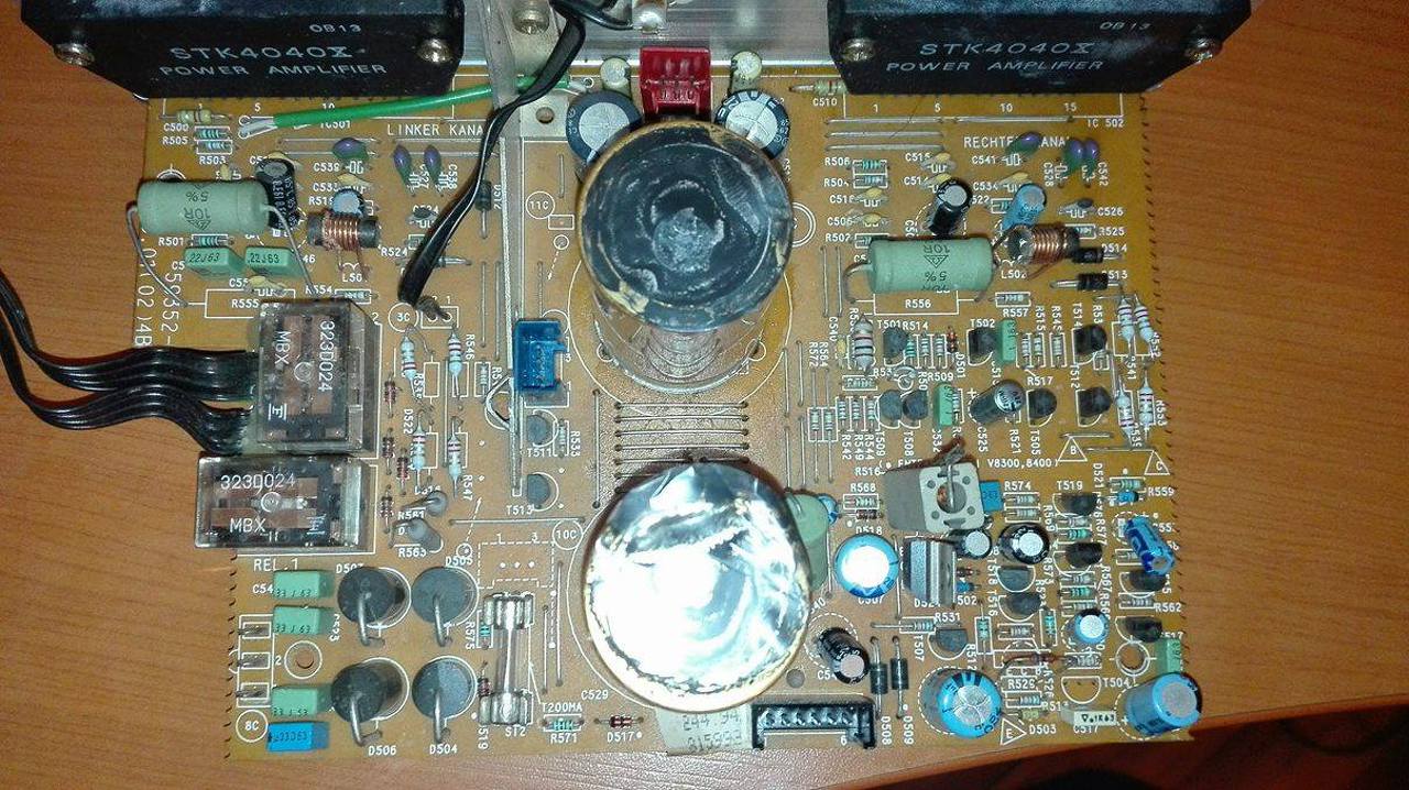 Alapból két dolgot nem szeret az elektrolit kondenzátor: fordított polaritás, a feltüntetett feszültséghatár tartós átlépése, vagy legalább is ezeket szokta 'melegedéssel', 'fortyogással' jelezni. Ez irányba mérni kell, nincs jobb ötletem, a V8200 erősítő (szerintem az ugyanilyen) SM-a fent van az elektrotanya-n, de valahol nekem is meg van .pdf formátumban, abban fel vannak tüntetve a mérési pontok és a gyári feszültség értékek.