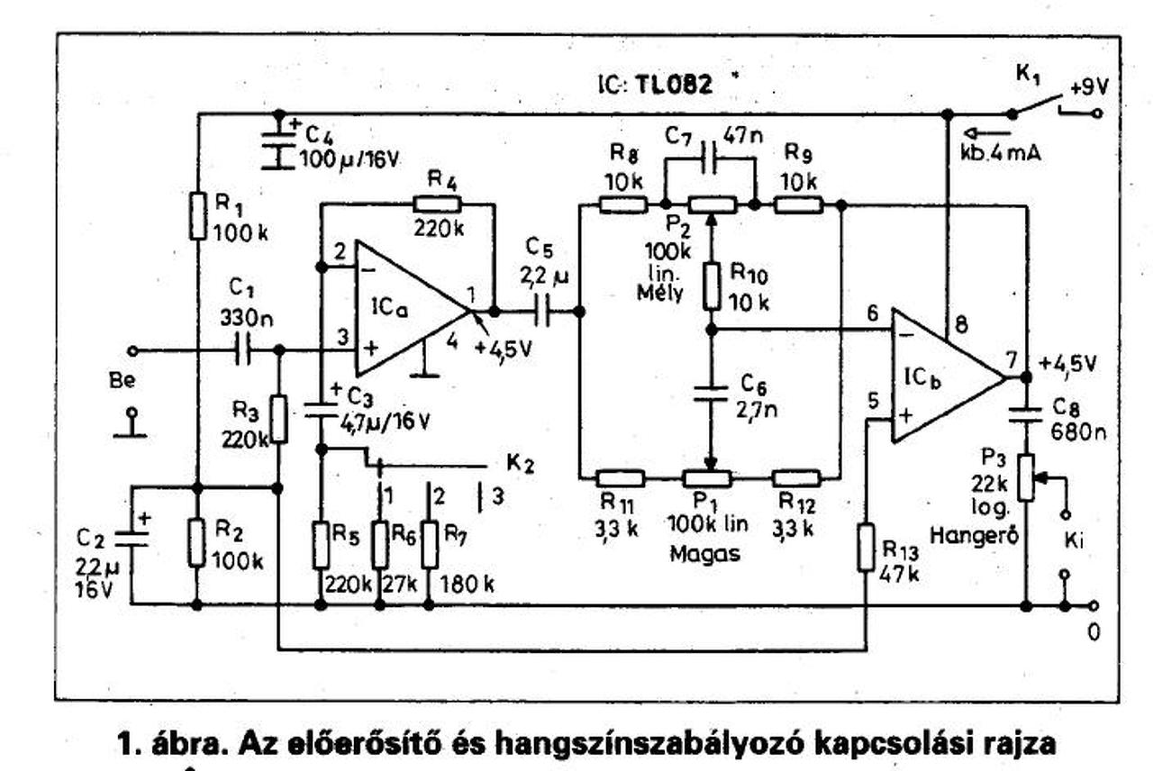 Oké, értem, de nem nagyon akarom én ezt állítgatni. Még egy kérdés, mennyire más az hogy az IC invertáló vagy nem invertáló bemenete van használva. A hangszín kapcsolást ne nézd mert ezeket én megváltoztattam a Videoton erősítőben használt alkatrészekre.