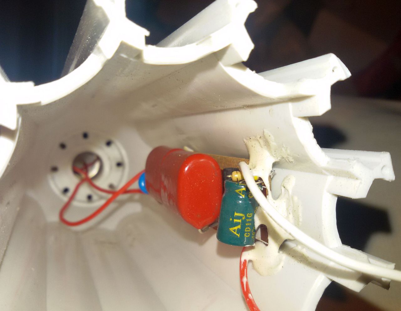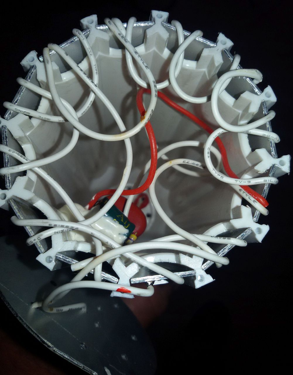 Az én "kondenzátor" tápegységes lámpám vezetékei is eléggé kusza látványt nyújtanak....de ki lehet bogozni.