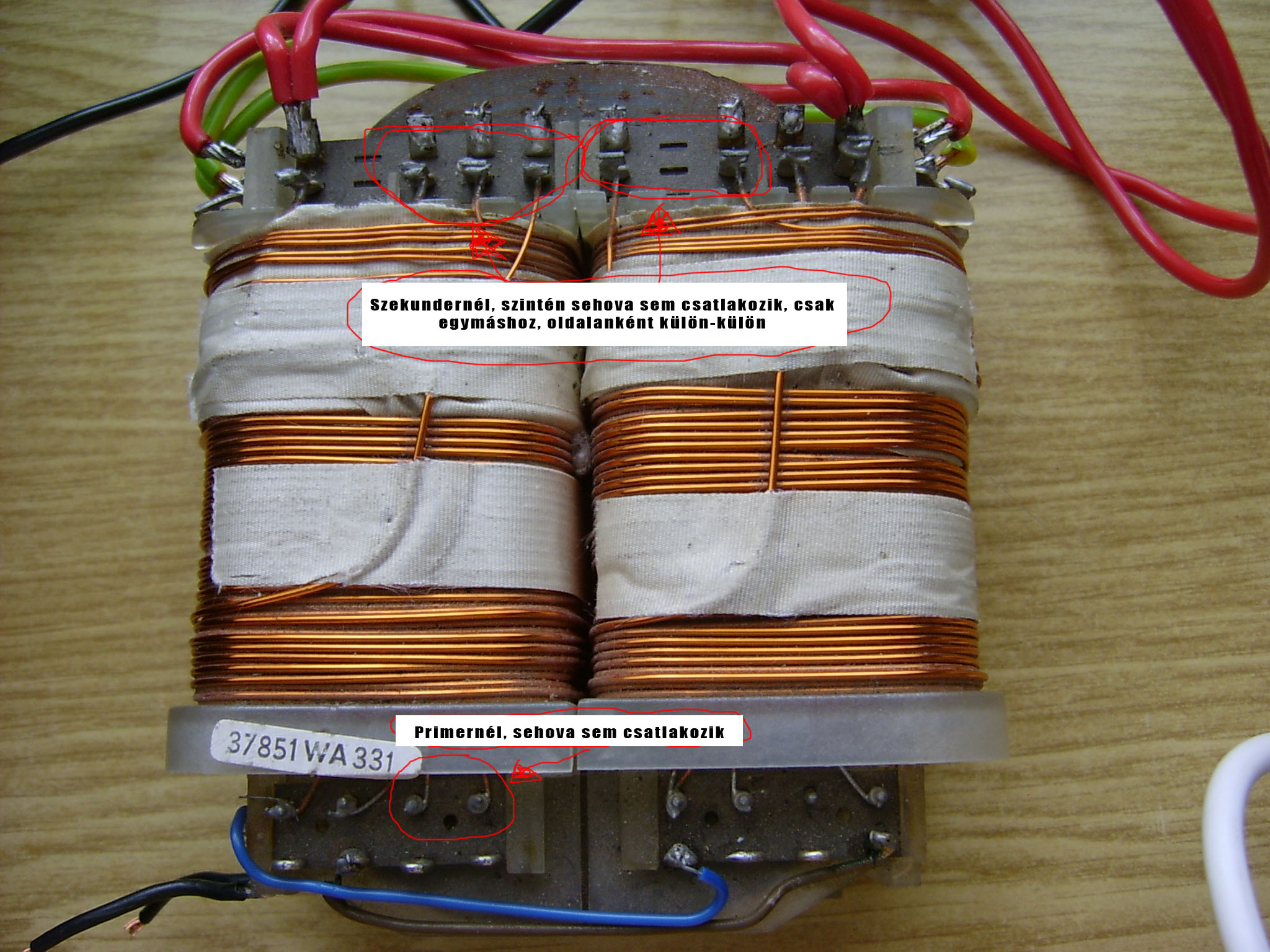 . A Biztató az hogy a jól működő 2x18V-os rész van lagalul, aztán fölötte a kevés feszt adó 9,valahány voltos.... De ami a káosz része , van még e felett is egy vékonyabb huzalból lévő tekercs, mind a két oldalon, de nem csatlakoznak egyik szekundehez, sem a primerhez ..... , találtam egy ilyen részt a primer részen is, igaz ott csak az egyik oldalon ez viszont ua keresztmetszetű mint a primer .... úgyhogy teljes a káosz..... elsem tudom képzelni mire valok ezek a "vak vágány" tekercsek .... talán valami mágneses tér kompenzáló ? vagy simán csak laza lett az alsó tekercs és ezzel rögziítették ..... ....... nem tudom mellékeltem képet, remélem ti láttok vmit amit én nem, ill. tudtok vmit amit én nem . ez utóbbi tuti ![]() üdv.