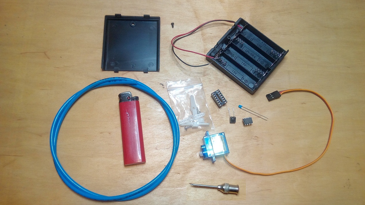 Elkészült saját tervezésű cin adagoló készülékem. Igyekeztem megint a lehető legkevesebb alkatrészből kihozni. (1-es kép) Egy 4 elemes elemtartó képezi a szerkezet talpát. A 2-es képen látható módon 3 elemessé alakítottam, mert a PIC sokallta volna a 6 voltot. Ráadásul a felszabadult részben prímán elfért az elektronika. Egy kiürült Cricet öngyújtóból kiszedtem a dörzskereket, ami három részre szedhető. (3-as kép) A középső része pont akkora furattal rendelkezik, hogy a 9 grammos szervo gyári rögzítő csavarja cupposan megy át rajta. Ezzel csavaroztam a szervo tengelyére. (4-es kép) A szerkezet többi eleme 3D nyomtatóval készült. Az adagoló tervei az 5-ös és 6-os, a markolaté a 7-es képen látható. a 8-as képen már az összeállítás látható. Került még a szerkezetbe egy encoder kapcsoló, amivel az előtolás sebessége állítható. A markolaton lévő gomb folyamatos nyomására történik az adagolás. Ha a gomb duplán van megnyomva, akkor visszahúzza a cint az adagoló. A szervo kissé át lett alakítva. kikerült belőle a határoló, hogy körbe tudjon forogni, valamint a potméter helyére egy két ellenállásból álló feszültségosztó került, hogy a vezérlése azt higgye, középen áll. Egy PIC10F322-es működteti a szervot. Egy kis video a használatról.