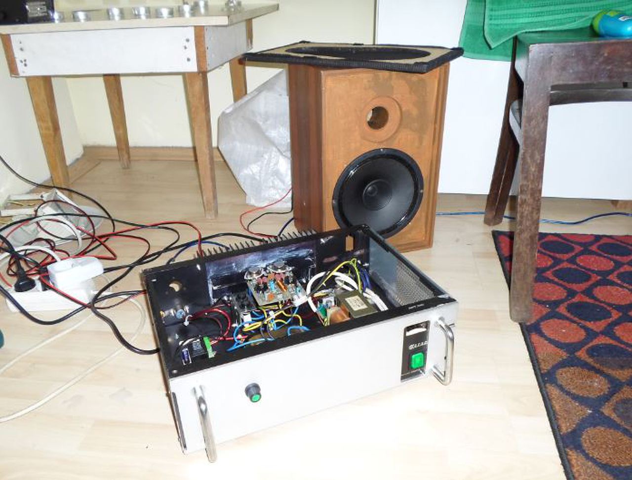 Sziasztok ! A beag mag100 végfokjára épült erősítőm végül mégis csak megkapta a pioneer hifitorony lemeztrafóját.Szerintem így tökéletes.Zenét hallgatni,de még gitározni is lehet rajta.A dob alapot a BEAG APT 100- bd -s verziójával hajtott rendszerről tettem a "zene" alá,a hang fényképezőgép mikrofonnal lett felvéve, a dobalap az egyik módosított videoton dp 202e hangsugárzóról szól.(Zenehallgatáshoz maradt a JVC sp d 452 hifi, amiben már csak a papír magas szól és a mélyközép,a dobozba került egy 0,47mh tekercs és egy remix c219 3,3uf kondi...)Én azt mondom,hogy elégedett ember vagyok most.Pedig ilyet ugye nem szabadna mondani.(pedig de)