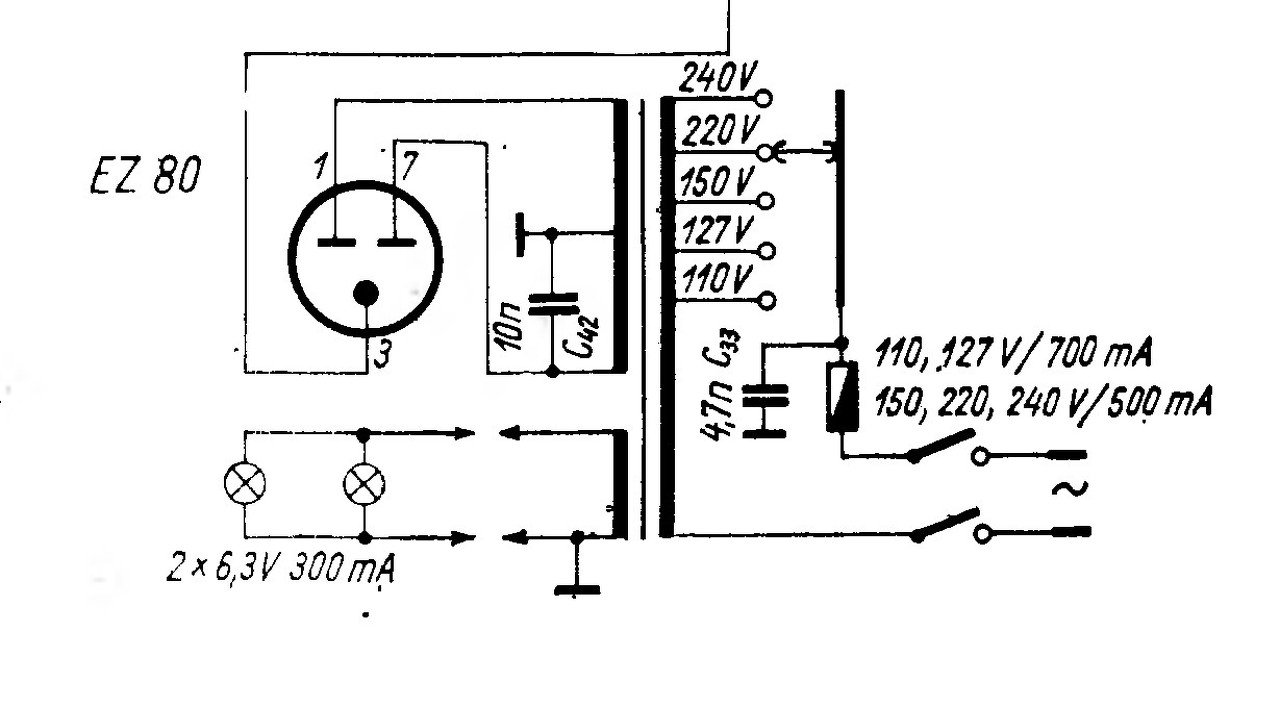 Az egyenirányító csőnek illik külön fűtést adni. A fűtőszálának közepelése (földhöz) veszélyes mutatvány, tekintettel az ei cső fűtés katód feszültségére. Az egyenirányító cső katódja a + tápfeszültségen van, ezért ha a fűtését kötik egyáltalán valahová, akkor az a + tápfesz. Az EZ80 Ufkp feszültsége ugyan 500 V, de jobb nem kitenni nagyobb feszültségnek.
