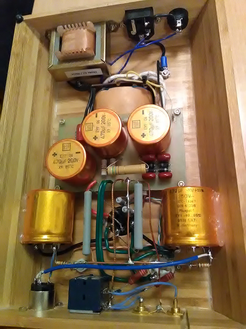 Én a fojtóval párhuzamosan nem tennék semmilyen kondenzátort, mert rezonanciára lehet hajlamos, ami rosszabb, mintha semmi nem lenne ott. A fojtótekercs elhelyezése is lehet kritikus, minél messzebb a bemenetektől és a hálózati transzformátortól is.