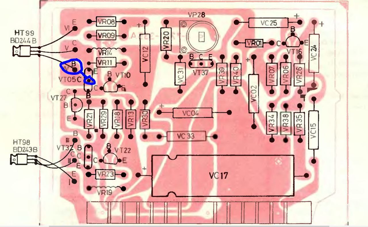 közelről szemügyre vételezve látszódik hogy vc05 középső lábánál szakadás van a nyákon , megoldás lenne ha vc05 középső lábához forrasztanék egy kábelt ? a kábel másik végét pedig BD 244B "B jelű" ágához forrasztanám .