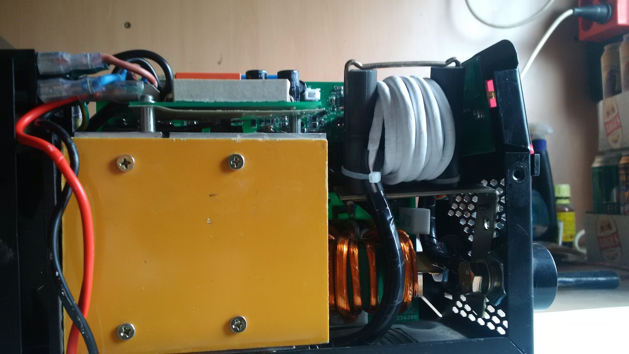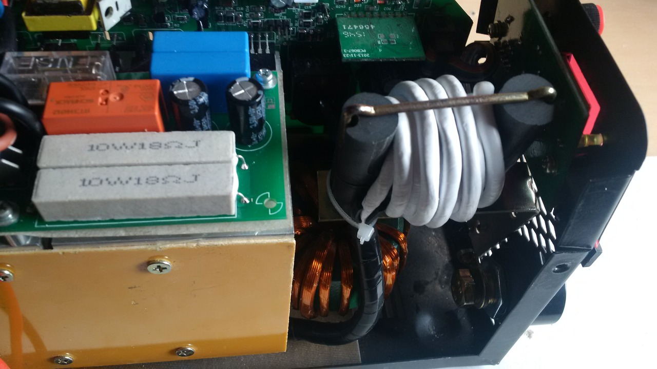 A lágyindítóban első elektróda érintésre elszállt a biztosíték nekem is. Ki is vettem az egészet belőle, mert a gép kellett, de nagyobb biztim meg nem volt itthon. Azóta nem foglalkoztam vele. A fojtó nekem is U57-re lett tekerve, de csak 12 menet ment rá bandázsolva. Tegnap meg is mértem és csak 20uH az induktivitása. Lehet, hogy kevés, de ez nem biztos. Kevésbé fröcsköl tőle meg a hangja is teljesen más.