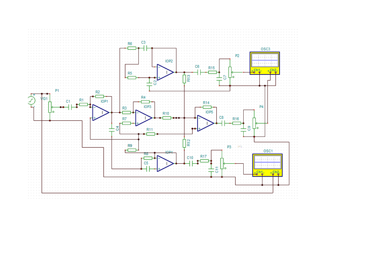 Köss egy GND-t a VG1 negatív pontjához, illetve ellenőrizd le a csomópontokat (pl. három egymás mellett R10-nél, nem túl bizalomgerjesztő.) Esetleg előröl is összerakhatod és folyamatosan tesztelheted, hogy még megfelelő, vagy sem. Ments sűrűn, mert szeret a szimulációba belefagyni.