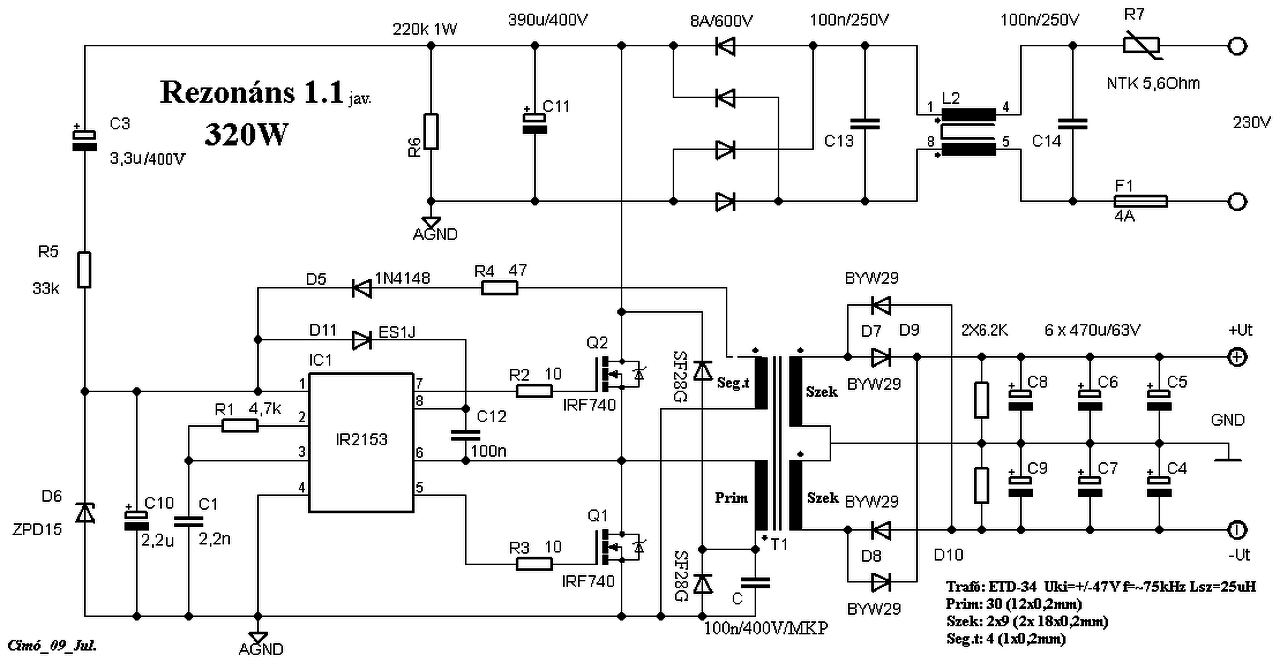 Érdeklődnék, hogy a cimopata féle 1.1-es rajz honnan származik? Mert csak ebben a fórumban találtam meg. A cikkben is más van. De a legjobban az érdekel, hogy ott csak 1 rezonáns kondit látok az alsó diódával párhuzamosan. (Bár az IC adatlapja is így rajzolja). Működik-e ebben a formában vagy mindenképp kell a felső diódához is kondi? Ha igen, akkor a két kondi kapacitásával kell számolni a rezsó frekijét? Előre is köszi a válaszokat!