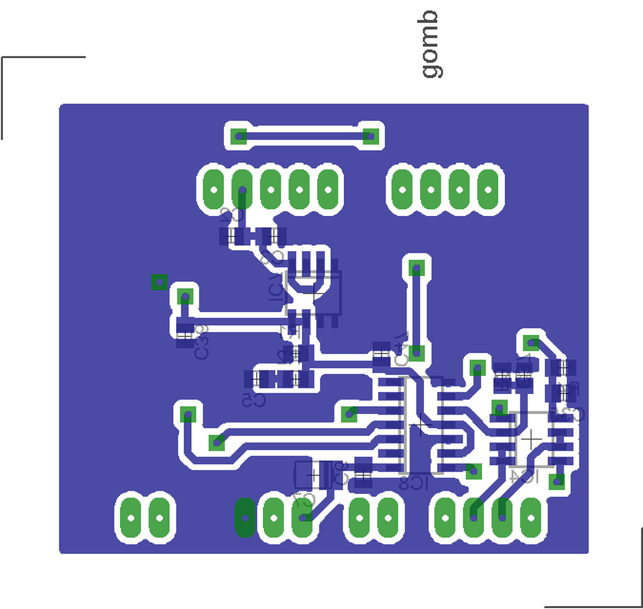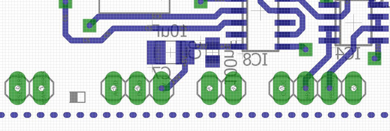 Jogos az észrevétel. Az első terven így nézett ki a digital board, viszont így a nyákterv tartalmazott "légkötéseket". Az áttervezett digitális részen a -5V a panel szélére került, de nem terveztem át a "digital board"-ot mint Eagle alkatrészt. A nyákterv és a sematikus ábra passzolnak egymással, csak a valóságban fizikailag a -5V láb nem a két GND között, hanem a panel szélén helyezkedik el.