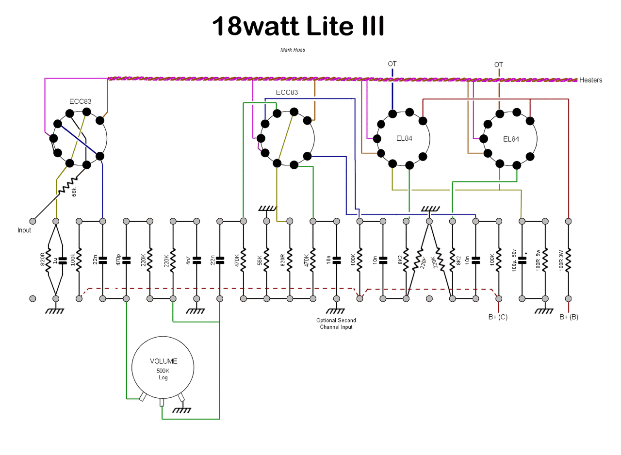 Nem lehet probléma, ha a végcső kivezetéseit azonosítod, akkor tudod, hogy hova javasoltam azt a két plusz ellenállást. A rajz alapján, jobb oldalon a 9-es lábra kell, mindkét végcsőnél a soros 47-100Ohm közötti értékű ellenállás és azok másik lábait közösítve megy a 100Ohm-ra, ami a B+-hoz van kötve.