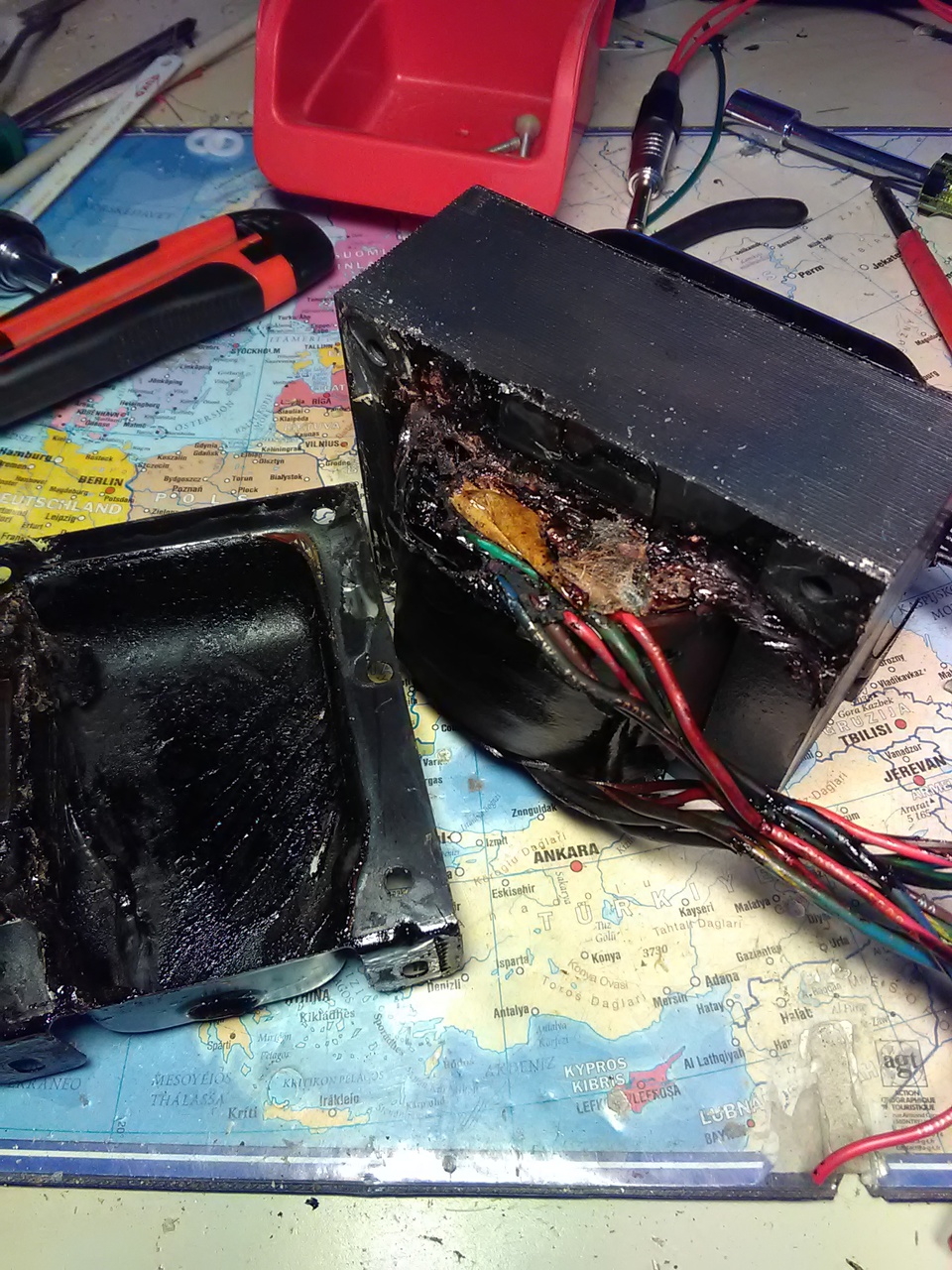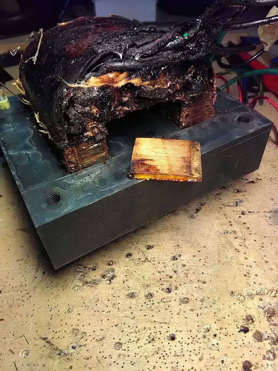 Elkezdtem szétszedni egy Krank Revolution erődítő leégett hálózati trafóját. Nincs csévetest, és egy fadarabbal volt kiékelve. Ez egy megszokott módszer?