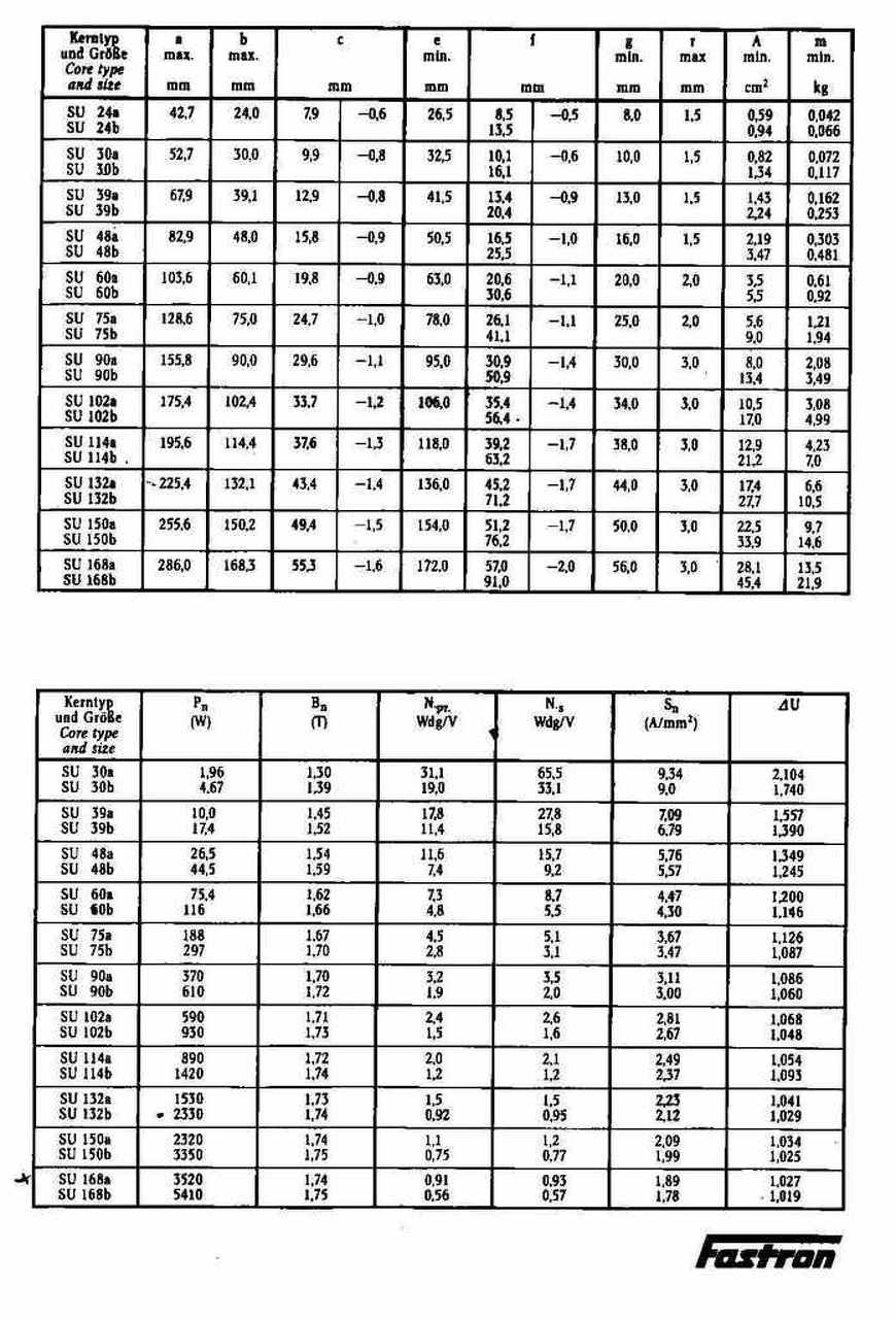 Van egy „hiperszil” trafóm és próbálom megállapítani a teljesítményét. Találtam katalógusadatokat, de ezt a magot (trafót) nem tudtam beazonosítani (egy régi Orion számítógép terminálba volt). Ezért a teljesítmény meghatározásánál a vasmagkeresztmetszetet vettem alapul, ami 11,4 cm2. Kialakítását tekintve SU szerkezetű és az SU102a típusú vasmagkeresztmetszete közelíti legjobban a kérdéses magot, de a mag mechanikai adatai köszönő viszonyban sincsenek a katalógus adataival. Ebből próbáltam meg visszavezetni a teljesítményét, amit 590W-ra ad meg.