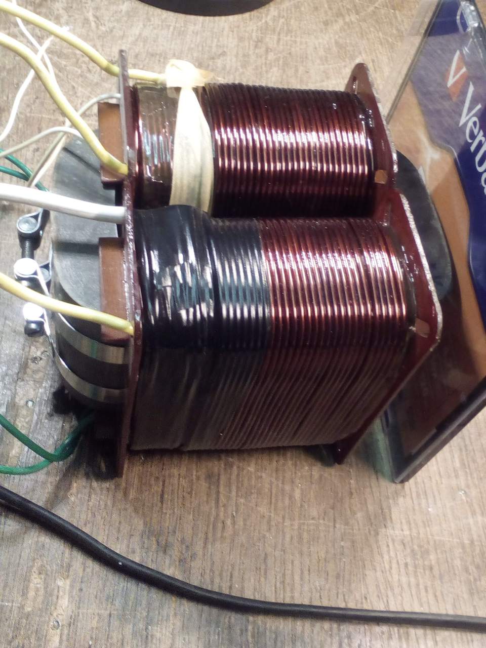 A tekercselés kivitele sem valami világi a te szempontodból. Kicsit vékonyabb primerrel és legalább 20 %-kal több menettel kellene újratekerni, a szekundert szintén és normális sor-és oldalszigeteléssel ( margin ). Így a teljesítmény tuti elég lenne az általad mutatott amerikai trafóhoz viszonyítva. Annál is csak a kivezetés az, ami nagyon megfogott téged, persze a "bele" is valszín beöntött lehet.