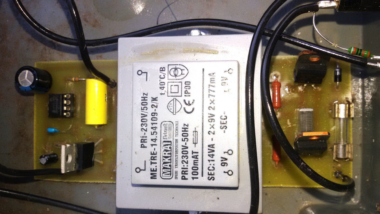 A megépítésnél hű voltam a kapcsolási rajzhoz, csak a C3-at cseréltem 10 mikrósra. Tápfeszre kapcsolva a szerkezetet az 500mA-es biztosíték füsté konvertálódik
