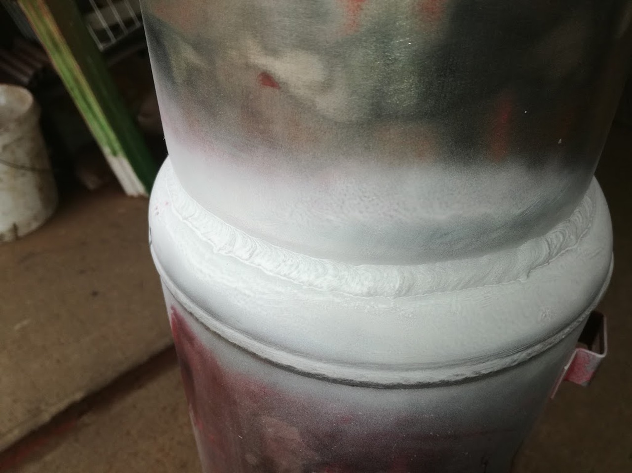 Ez egy tartály varrata, azért fehér mert penetrálva van (varrat beolvadás, olvadási hibákat vizsgáló eljárás), mondjuk ez nem elektródával ,hanem AWI-val csináltam.