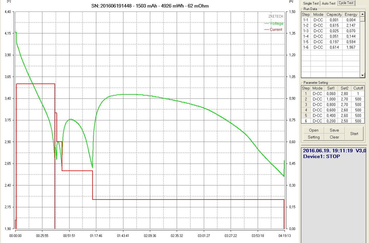 Kerítettem néhány érdekes grafikont. Általában kb 1C -s terheléssel készültek.