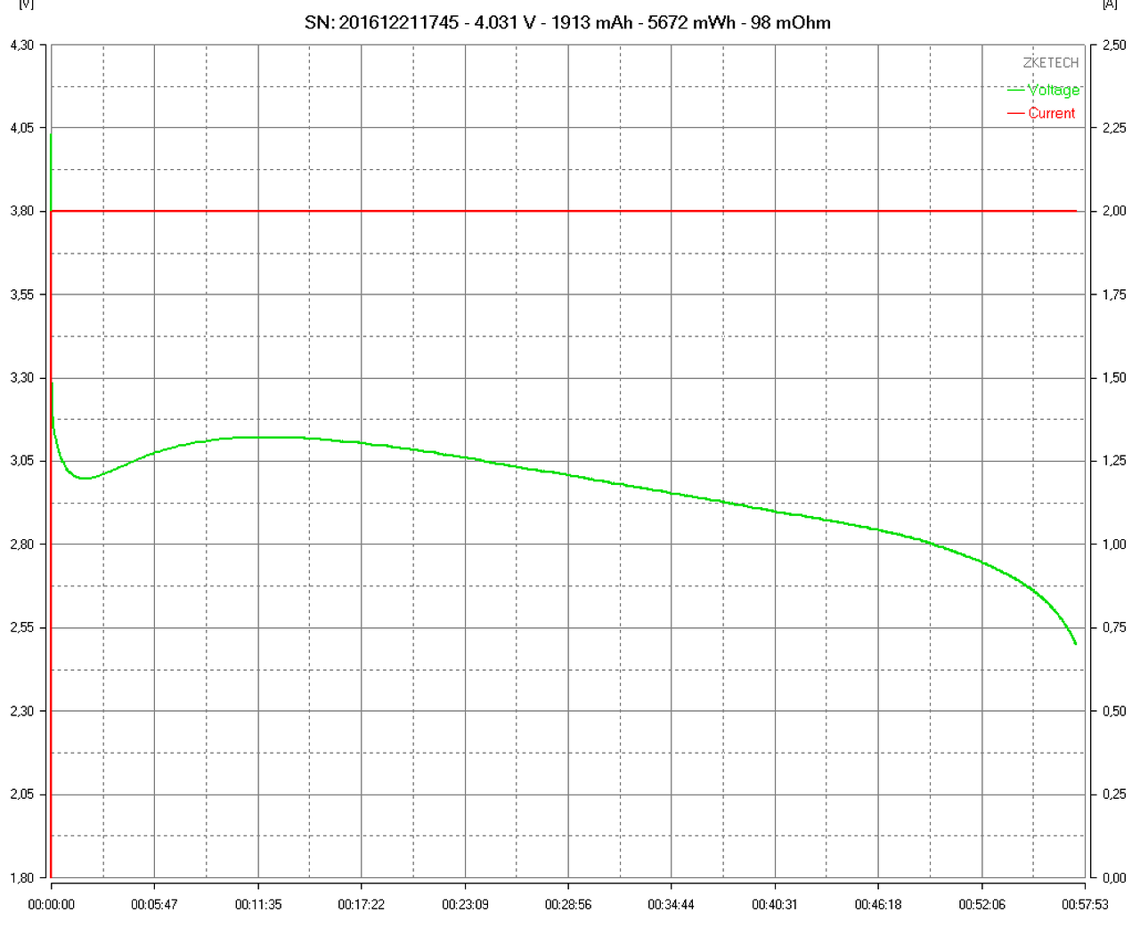 Azért még mielőtt hanyattvágnád magad a töltődtől, csak halkan kérdezném meg, a max kisütőárama mennyi ennek a készüléknek? Mert ha a 2Ah -s cellákat is csak 500mAh -val teszteled, és nem 1 C -vel, máris fals eredményt kapsz...