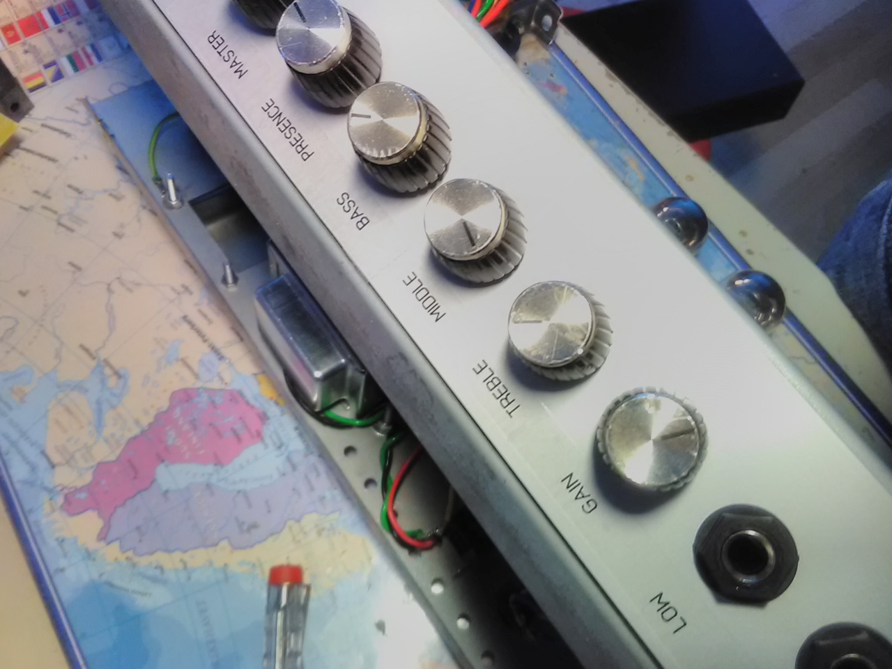 Az egyik elkészült, és itt a másik. Marshall VS100. A gondja hogy halkan szól. Végfok prpblémája van. Talán ha 1 W jön ki belőle. Illetve jött egy JCM800 láda is.