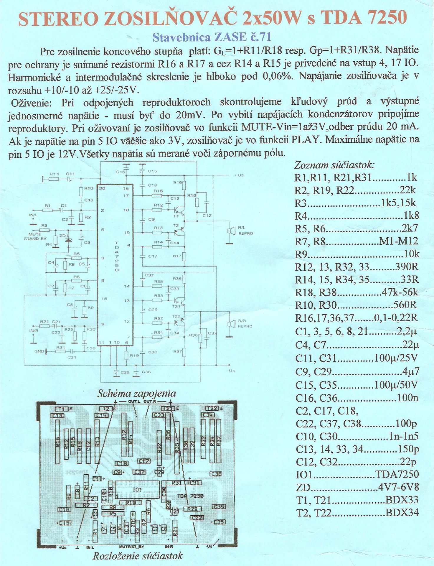 ... az van, hogy kimeneten csak nagyon halkan szól a zene, amit a bemenetre köttem. Vettem bele új TDA7250-et, és