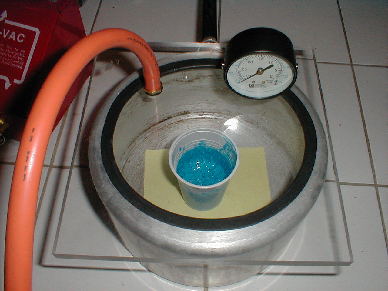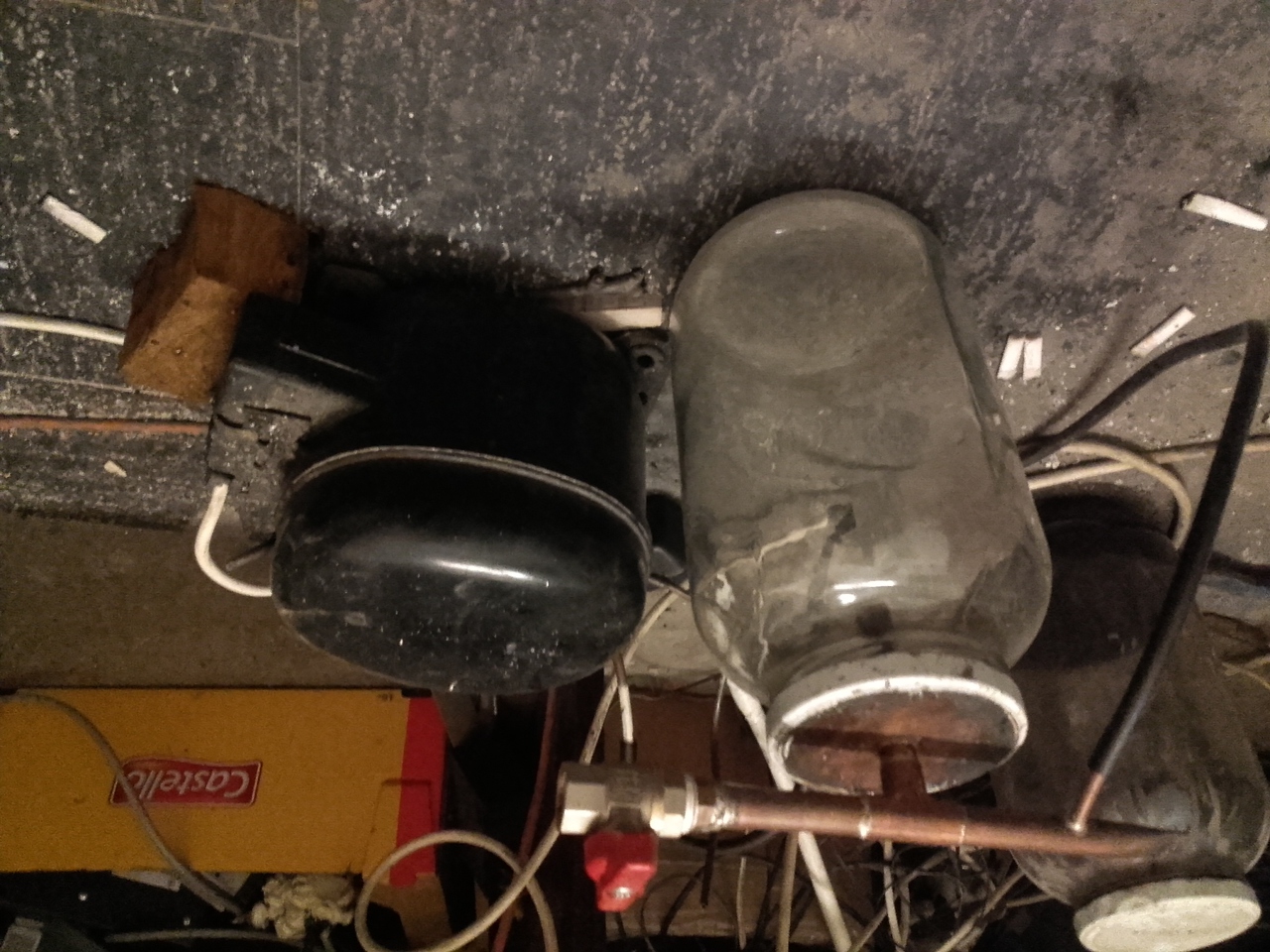 Az az ülepítő csak erre vár a műhelyben, azon teljesen jól fogom látni, ha jönne a lé és van idő, mert mire feltelne, hogy a kompresszorba rohanjon, leállítom. Aztán arra gondoltam, rajta hagyom majd a munkadarabot kilevegőzni, ami biztosan elég - 1-2 óra.