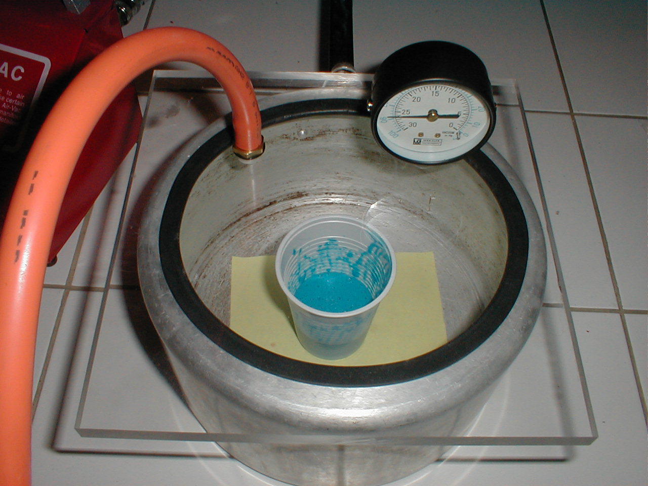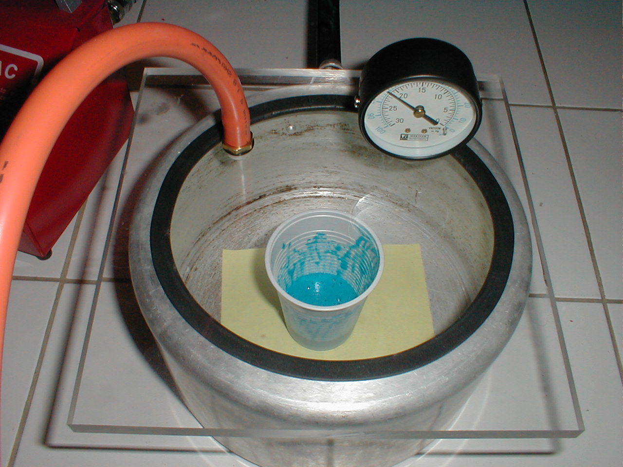 Itt biztos, mert nincs olyan mikroszkopikus járatokba zárva a levegő mint a fánál. Megkockáztatom, hogy nyomásból sem kell -0.8 ig lemenni. De ezt ki kell próbálni. De függ a dolog a folyadék higroszkóposságától is azt hiszem.
