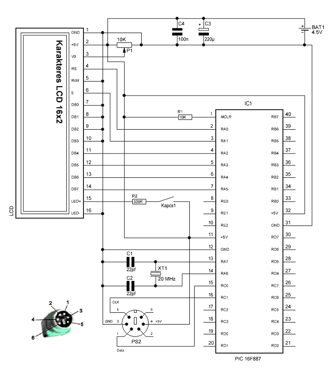 Mekkora feszültséget mérsz az LCD 15 és 16-os lába között, és az PIC táplábain 11 - 12, ha rajt van a táp?
